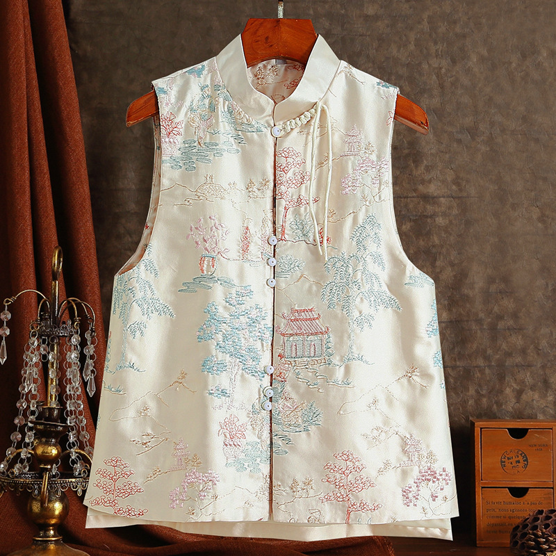 새로운 중국 스타일 조끼 여성 2024 년 새해 인기 국가 스타일 유행 조끼 젊은 자수 탑스토어 가기