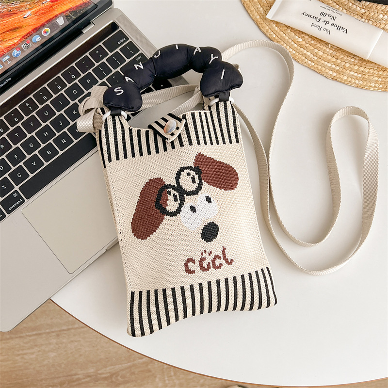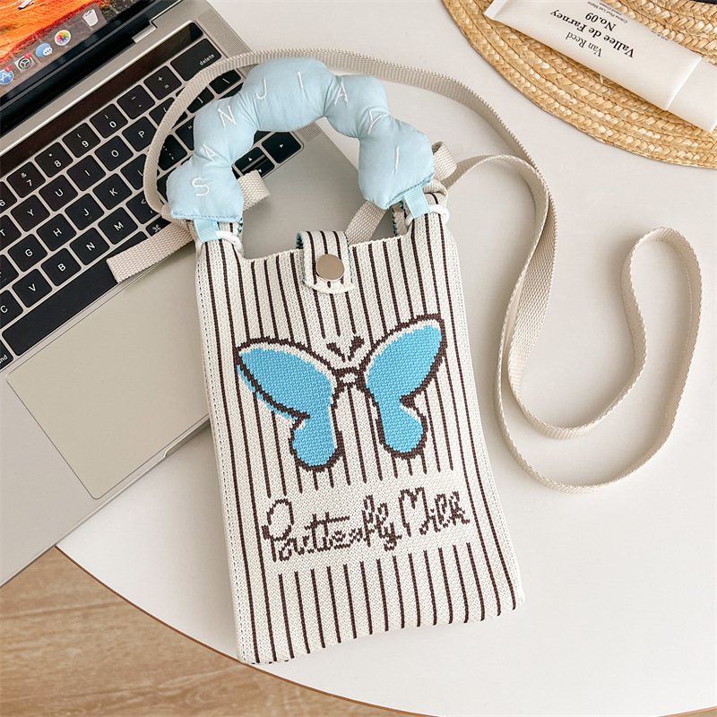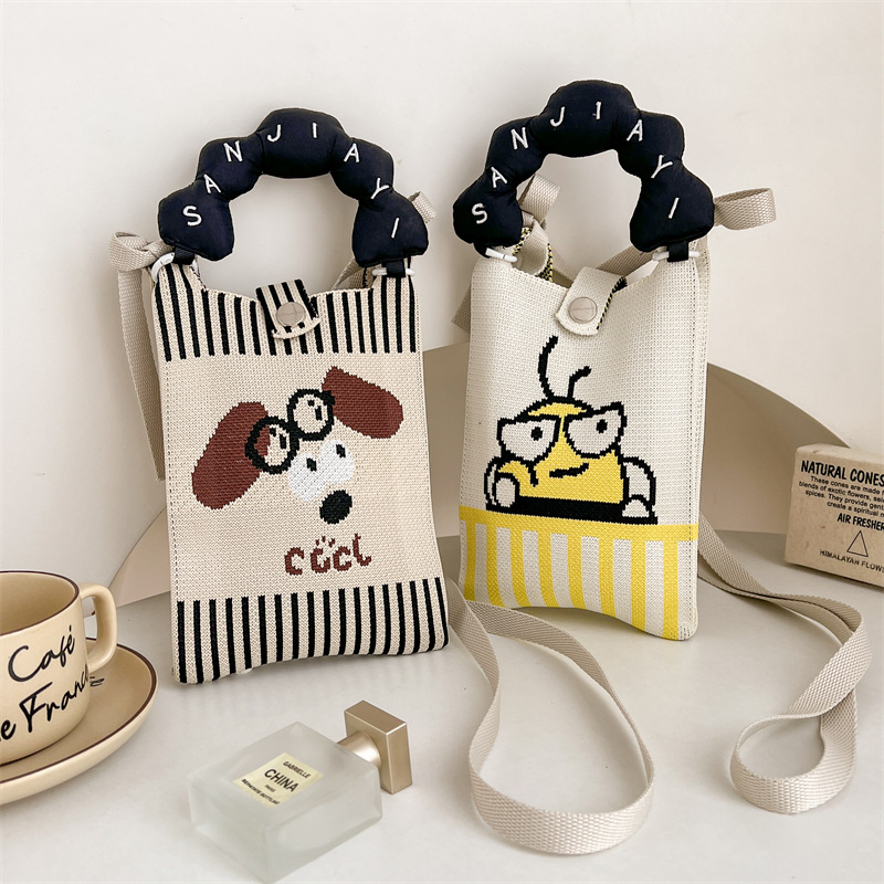 미니 니트 휴대 전화 가방 틈새 디자인 귀여운 만화 한국 스타일 올 매치 휴대용 통근 크로스 바디 여성용 가방 크로스