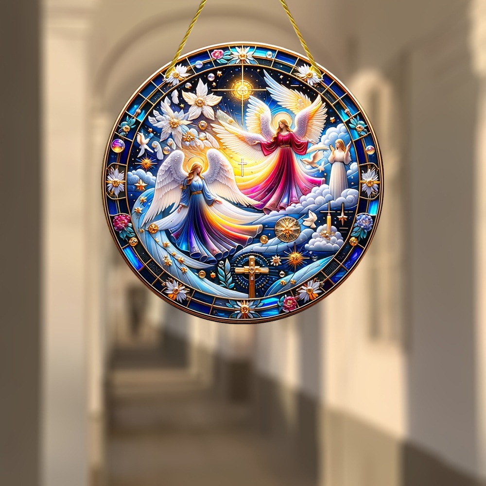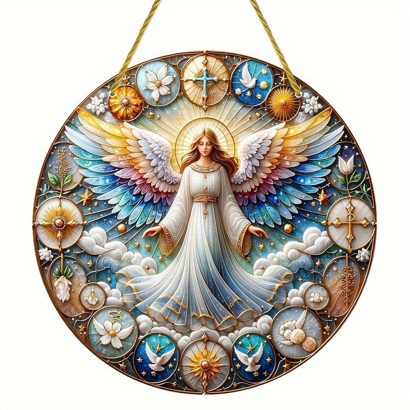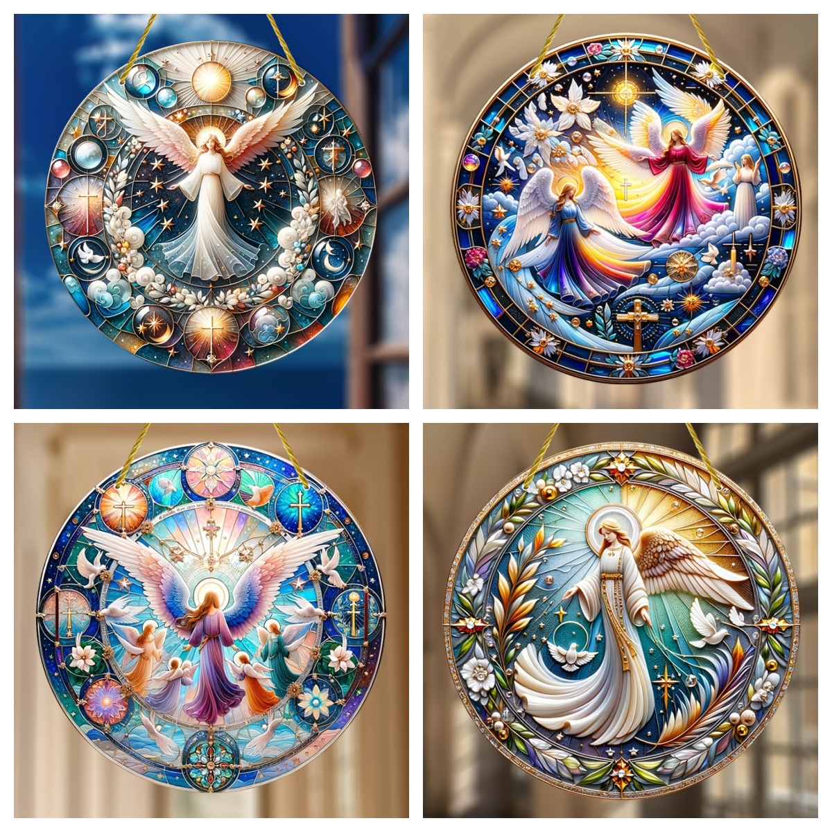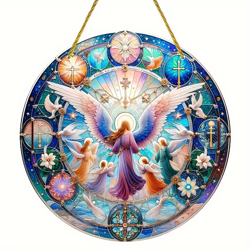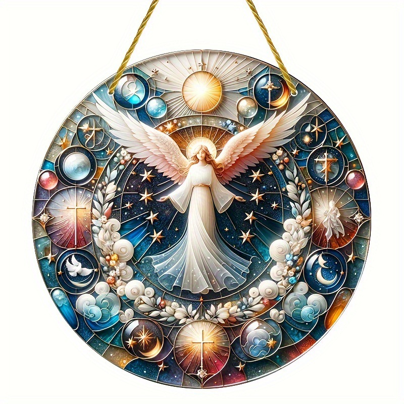 국경 독특한 천사 꽃 스파이크 컬러 행성 크로스 아크릴 디스크 펜던트 야외 현관 창 장식 목록스토어 가기