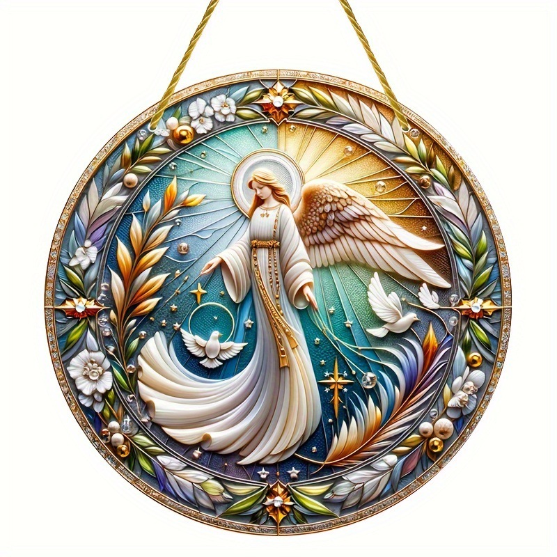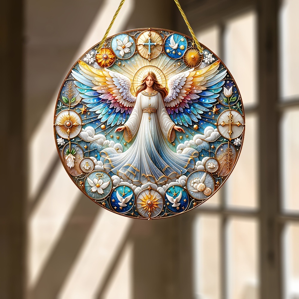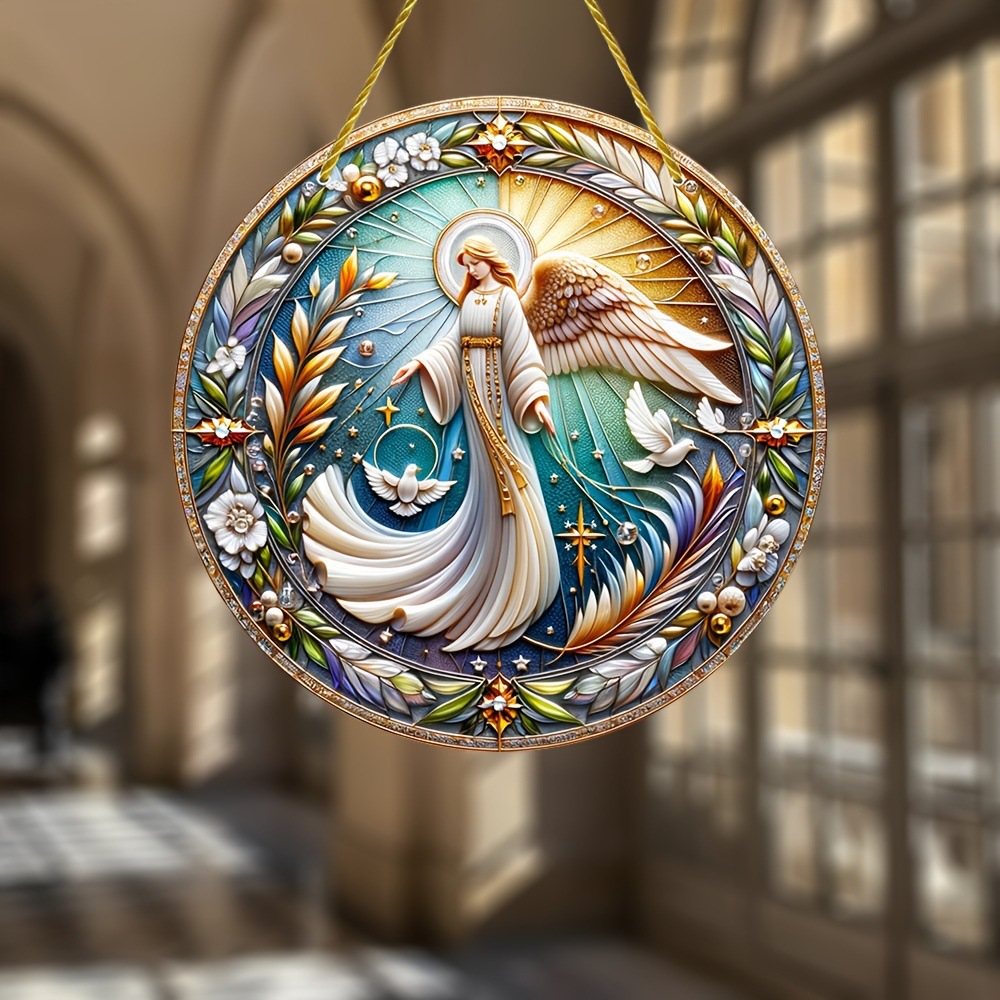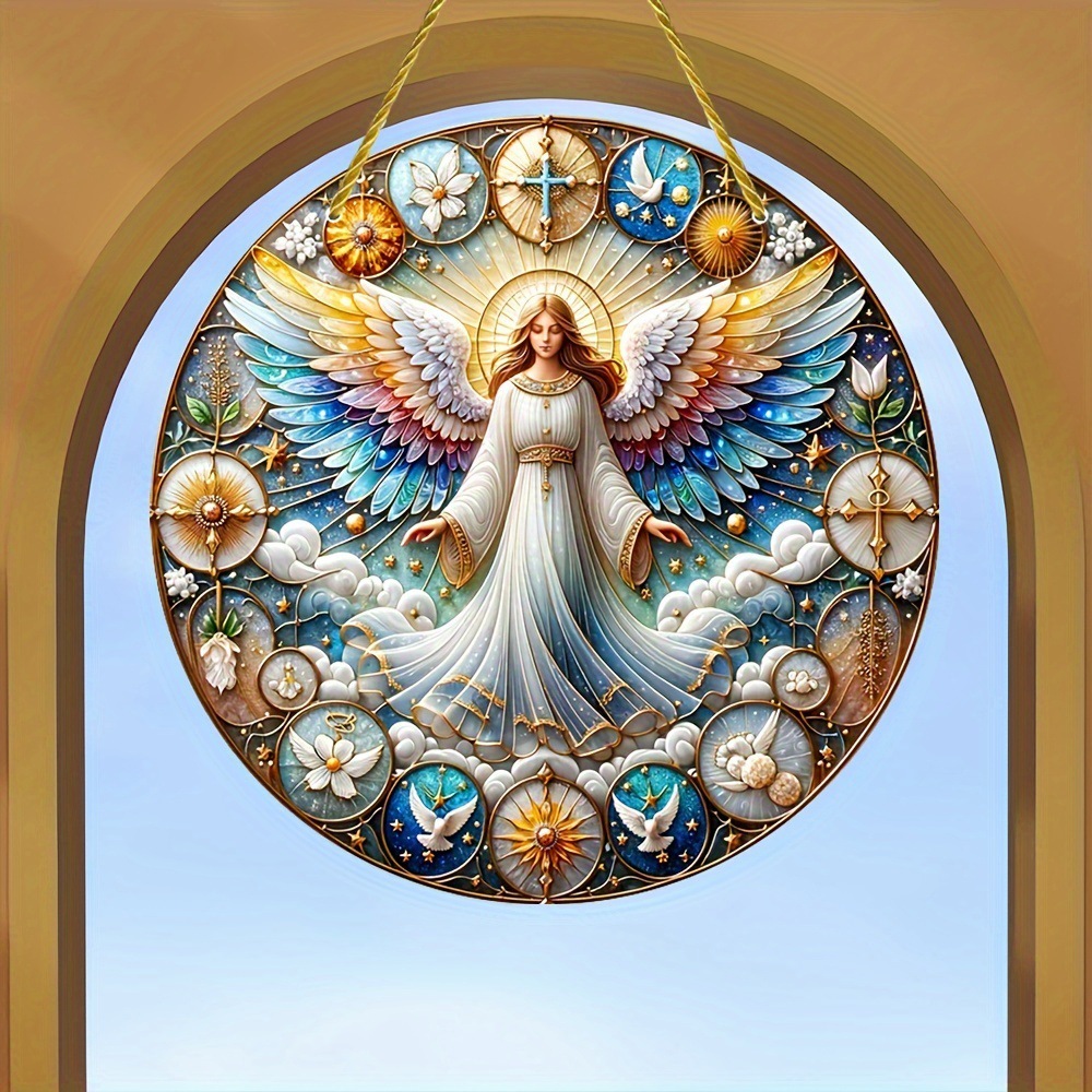 국경 독특한 천사 꽃 스파이크 컬러 행성 크로스 아크릴 디스크 펜던트 야외 현관 창 장식 목록스토어 가기