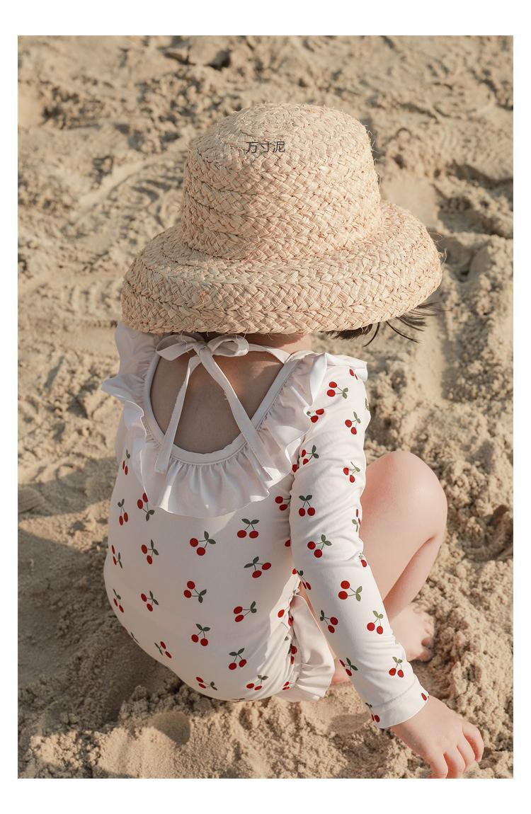 여자 귀여운 수영복 아기 소녀 2024 여름 백리스 바디 수영복 어린이 아웃 비치 의류 유행 도매