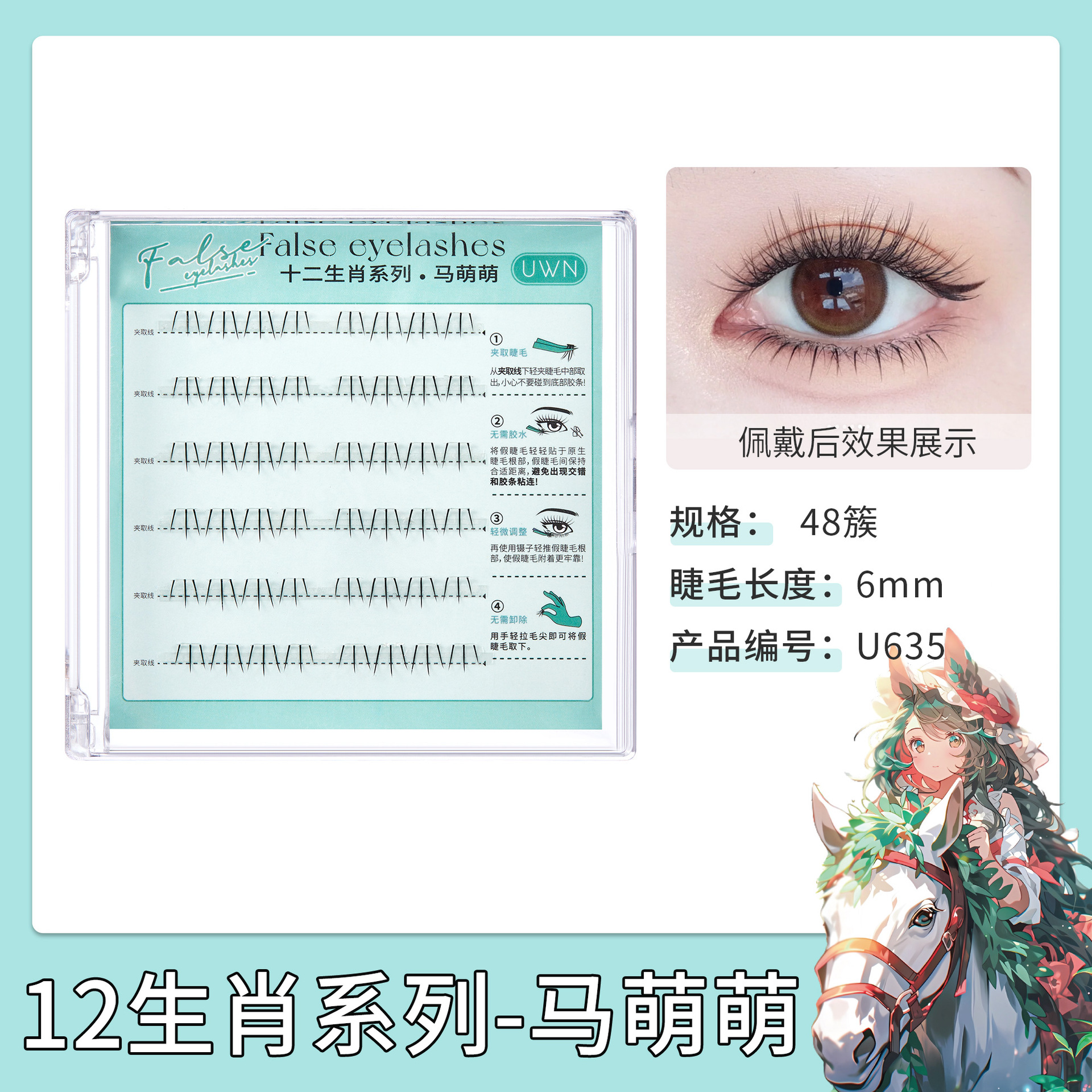 UWN Zodiac 시리즈 접착제가없는 거짓 속눈썹 Ma Mengmeng 낮은 속눈썹 작은 플래시 두껍고 오래 지속되는 자체 접착 속눈썹
