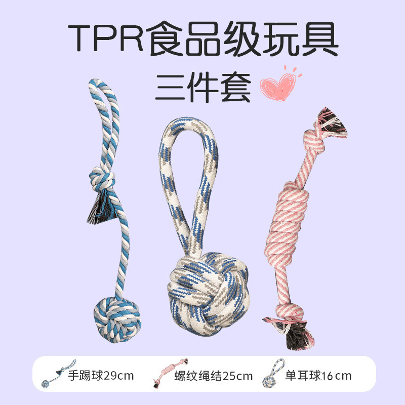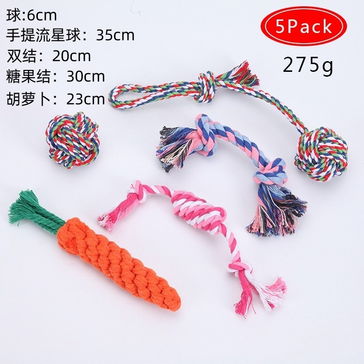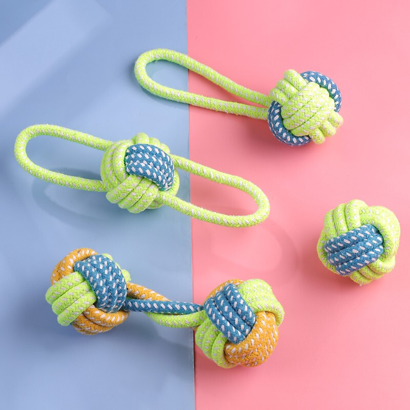 개 장난감 도매 Molar Bite 저항하는 로프 매듭 소형 및 대형 개 테디 애완 동물 면 로프 장난감 공 애완 동물 용품스토어 가기