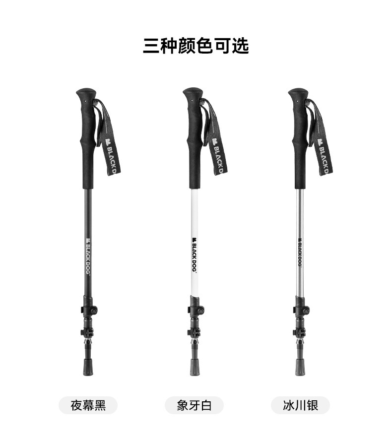 검은 개 야외 여행 사천 접이식 알펜 스톡 워킹 스틱 알루미늄 합금 야외 하이킹 장비 걷기 스틱 산악 등반