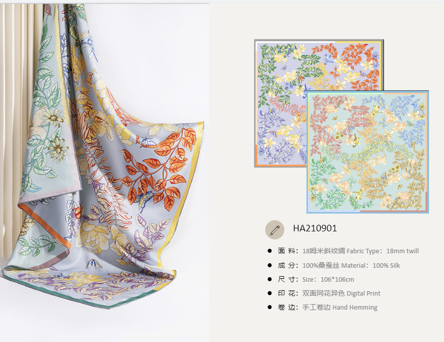 새로운 고급 18 mmi twill 실크 사각형 양면 인쇄 뽕나무 실크 스카프 선물 어머니 목도리스토어 가기