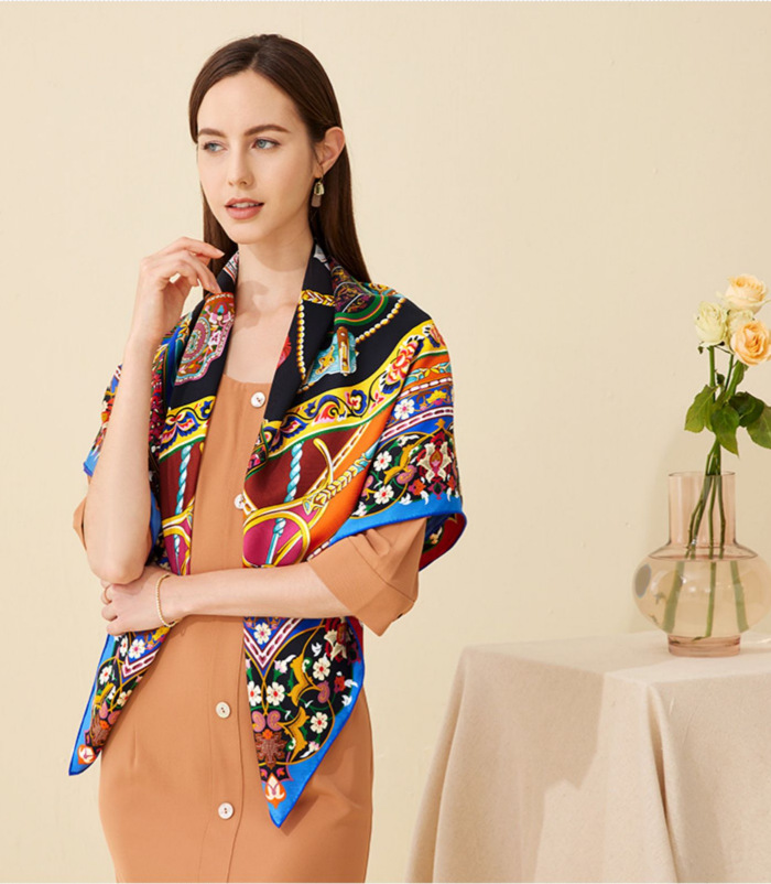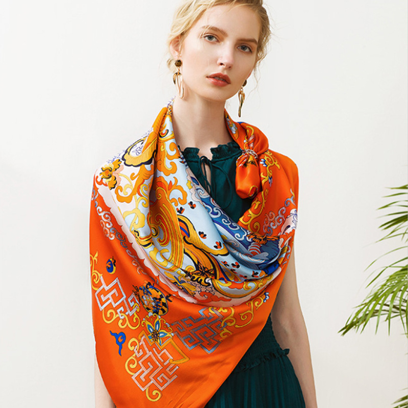 새로운 고급 18 mmi twill 실크 사각형 양면 인쇄 뽕나무 실크 스카프 선물 어머니 목도리