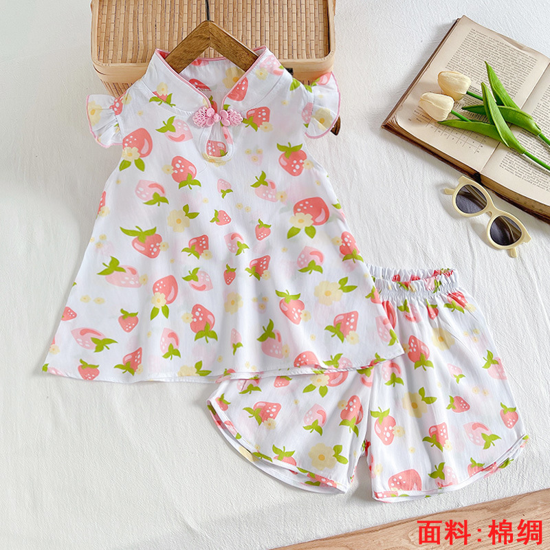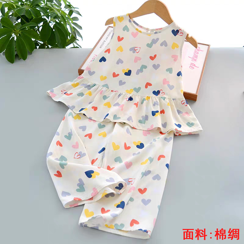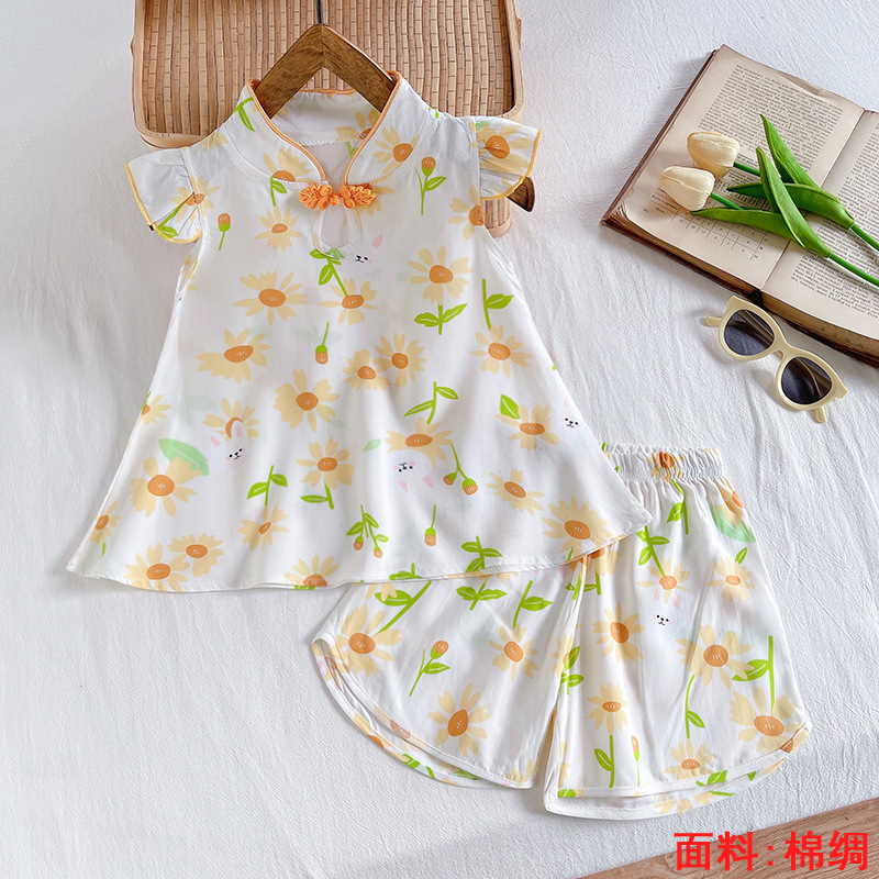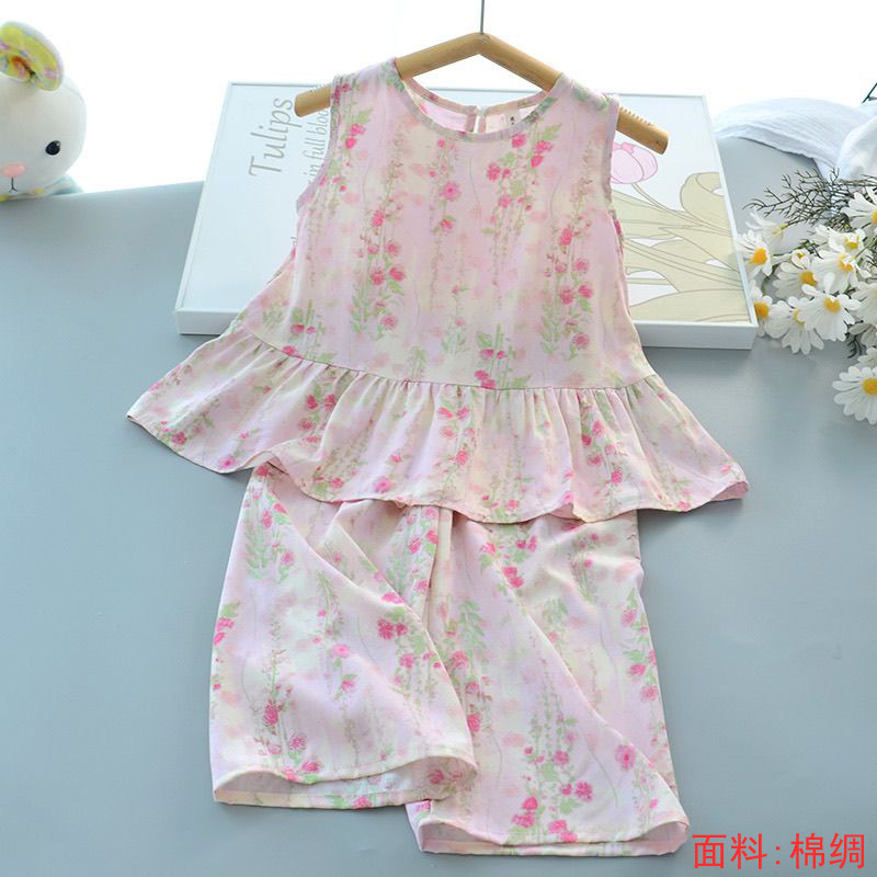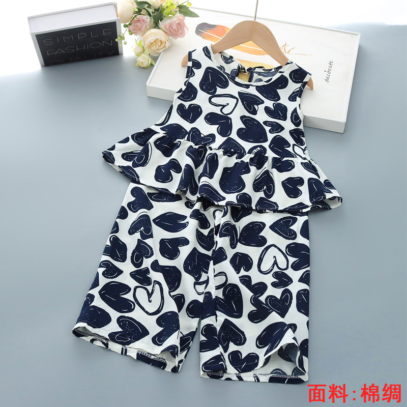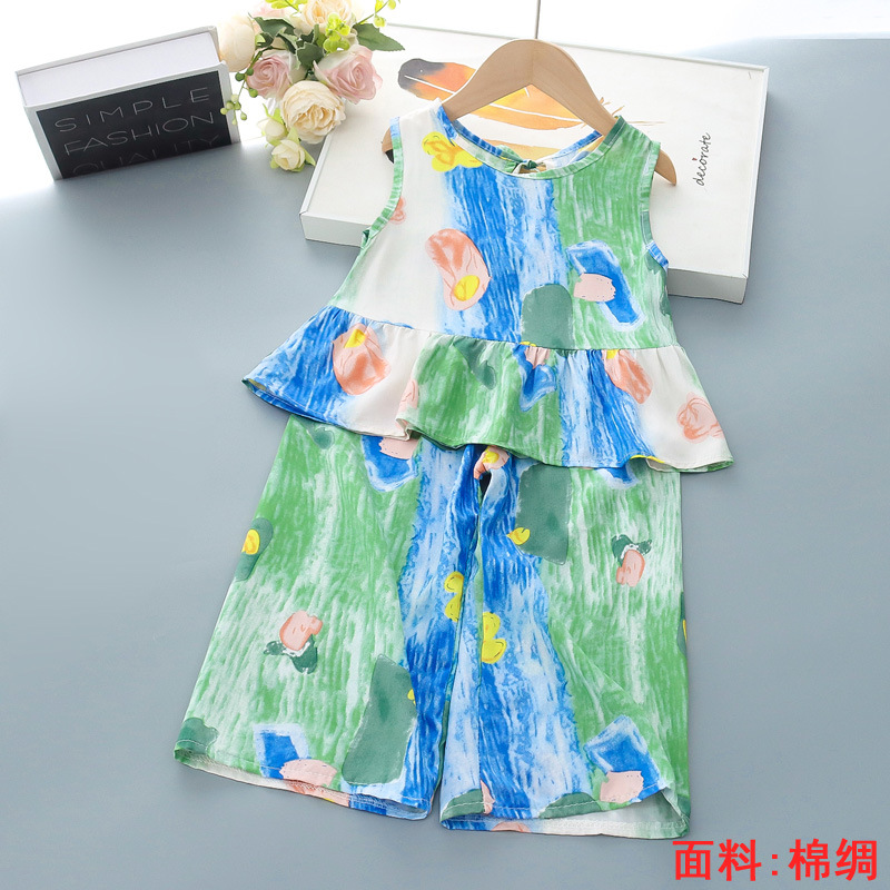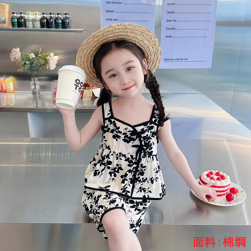 소녀의 귀여운 꽃 조끼 반바지 2 조각 세트 어린이 아기 여름 옷 세트 어린이 면 실크 홈 옷