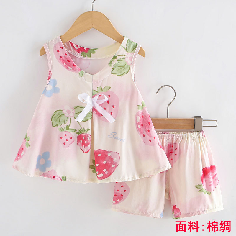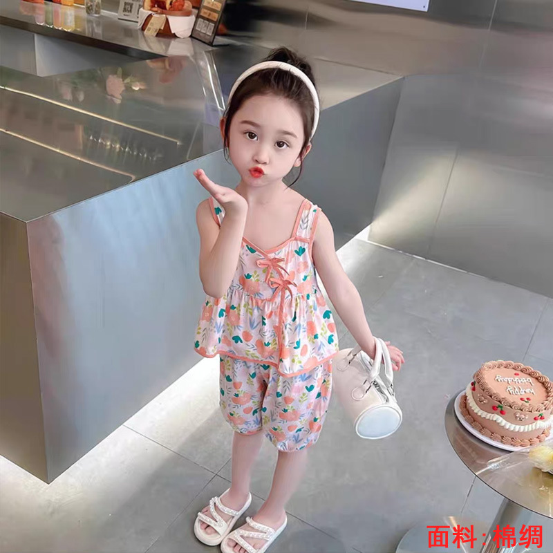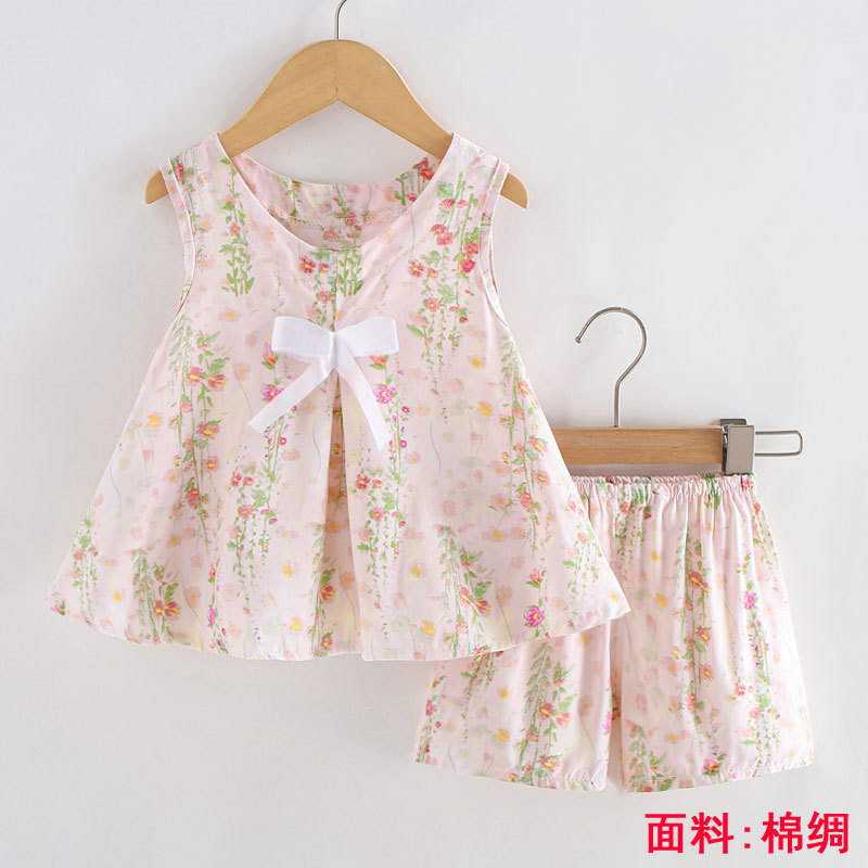 소녀의 귀여운 꽃 조끼 반바지 2 조각 세트 어린이 아기 여름 옷 세트 어린이 면 실크 홈 옷스토어 가기