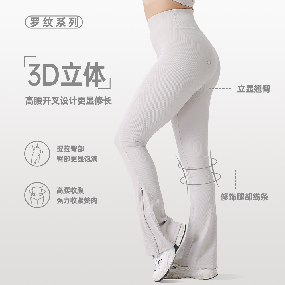 갈비뼈 꽃 바지 슬릿 요가 바지 스트레치 나일론 높은 허리 배 꽉 조이는 슬리밍 엉덩이 리프팅 스포츠 피트니스 마이크로 플래 든 바지스토어 가기