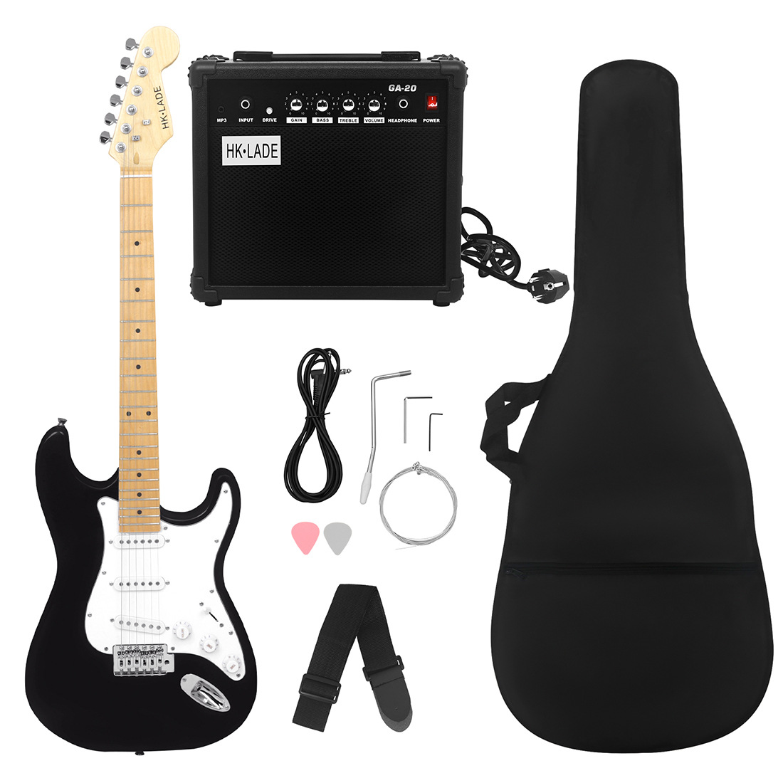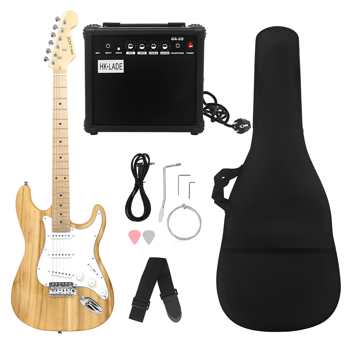 产品名称:HK·LADE新款ST-860 ST电吉他枫木指板套装(音响+包+背带+拨片+琴弦)