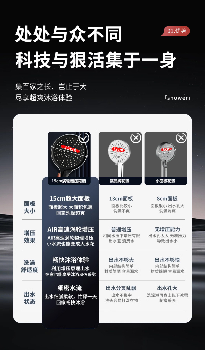 국경 간 Xiyin 슈퍼 차저 15CM 대형 샤워 노즐 가정용 욕실 샤워 온수기 가압 비 세트