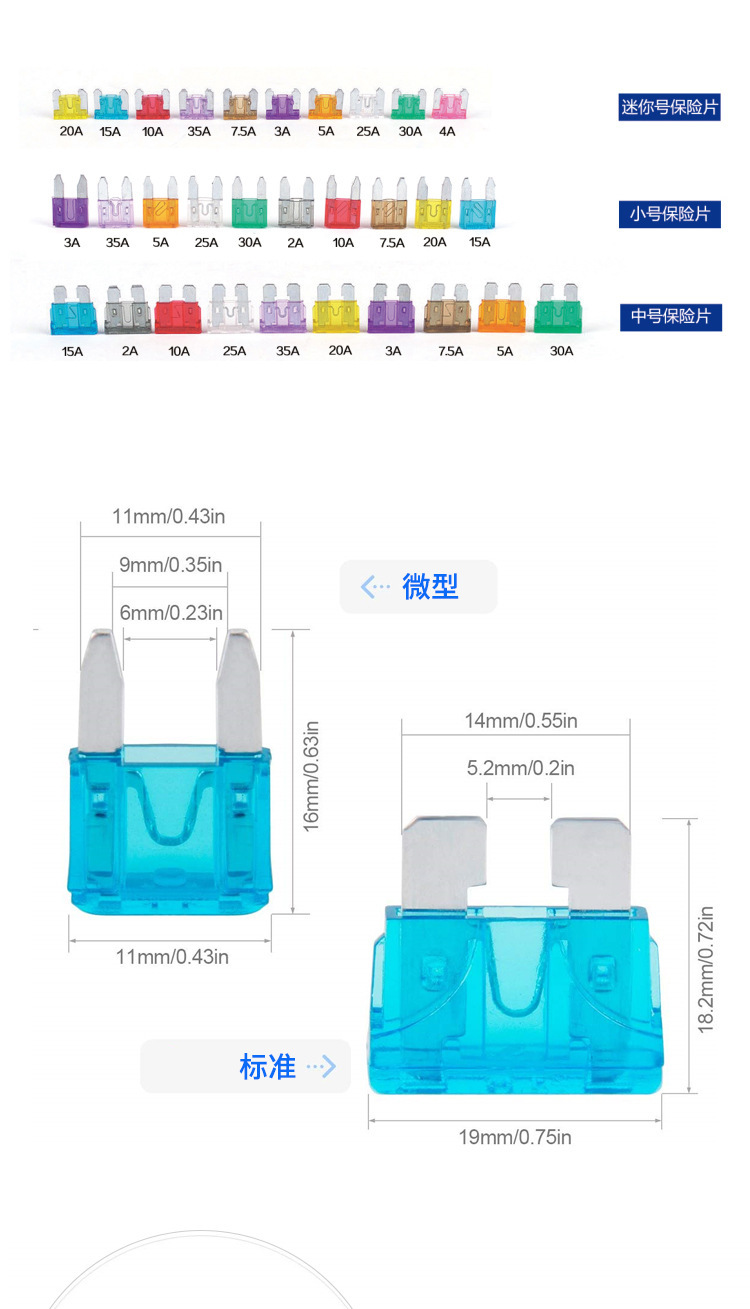 • 220pcs (스몰 사이즈 5A-40A) 자동차 퓨즈