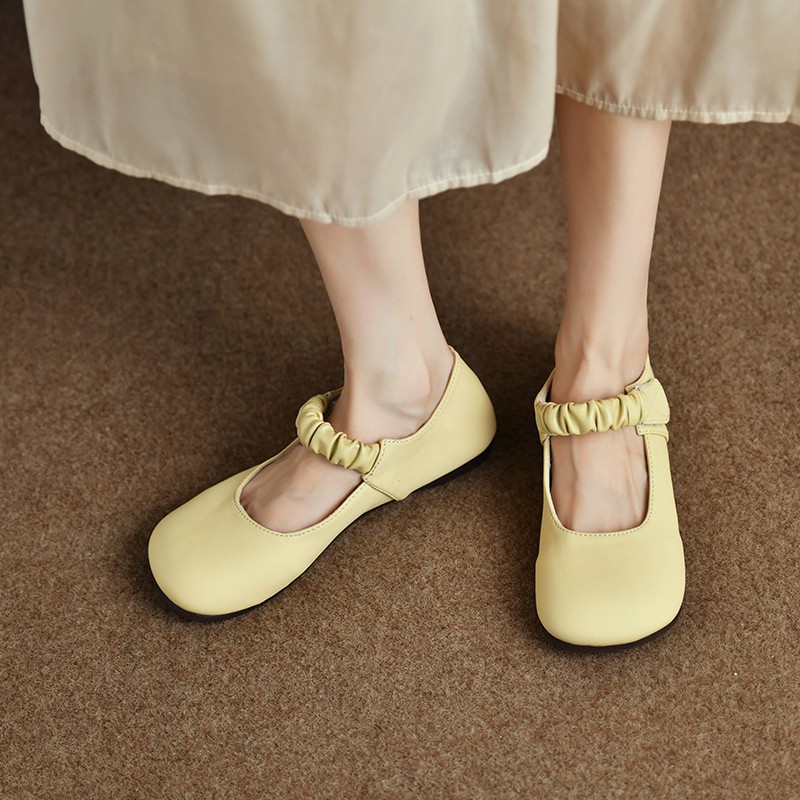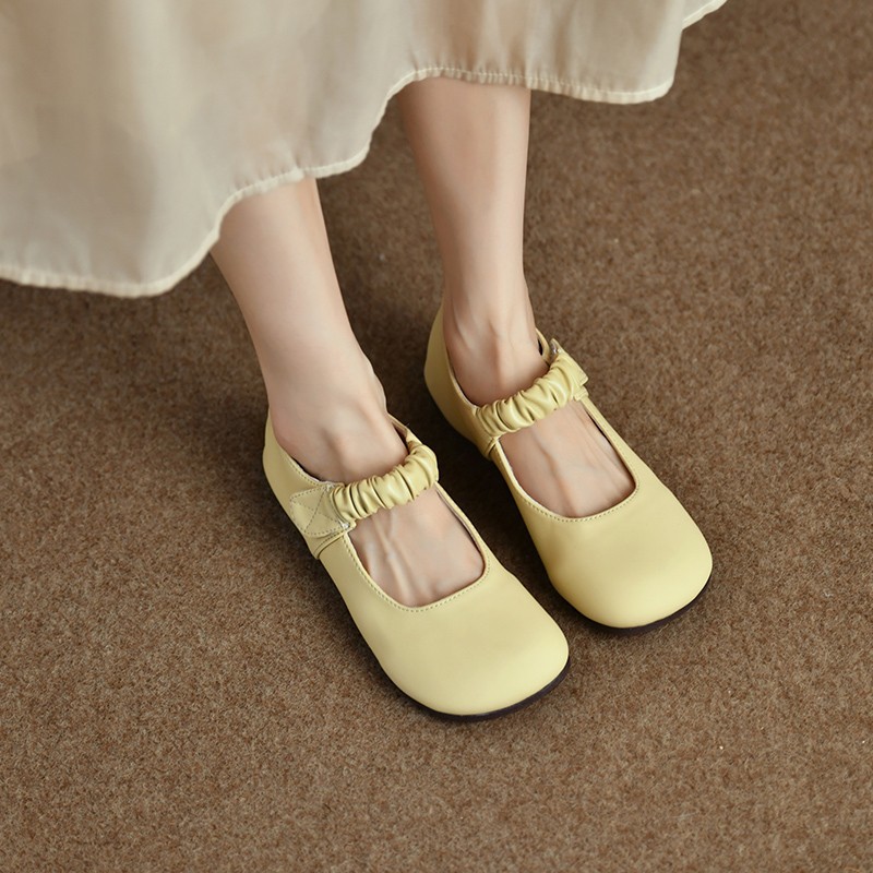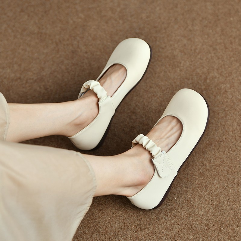 싱글 신발 여성 2024 새로운 기질 프랑스 복고풍 평면 부드러운 바닥 캐주얼 스커트 작은 가죽 신발 조수