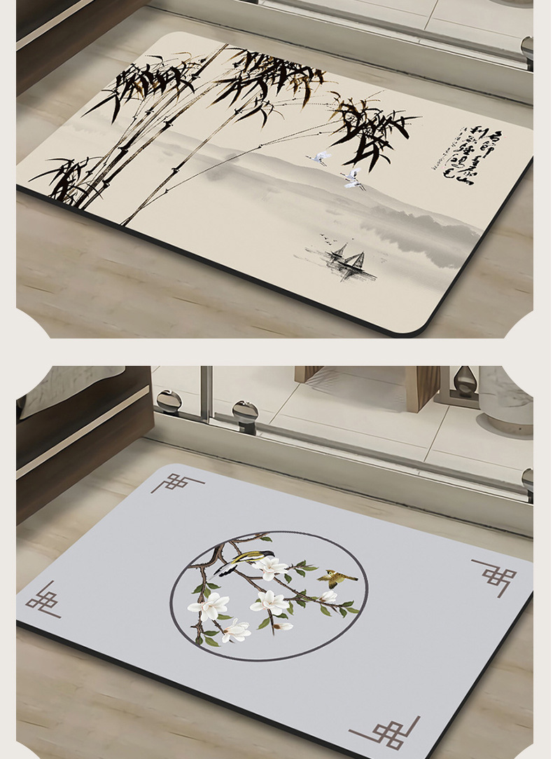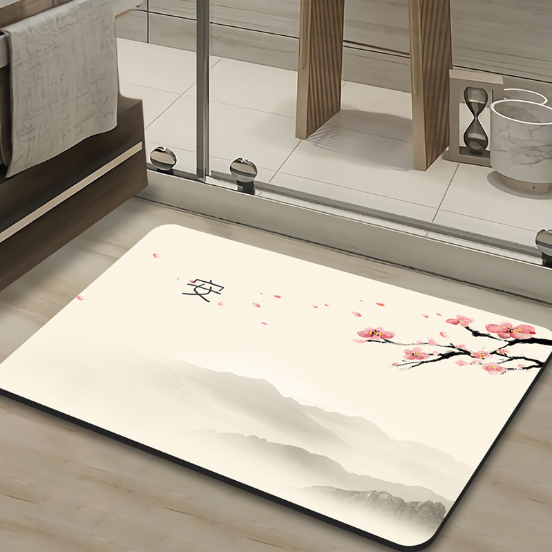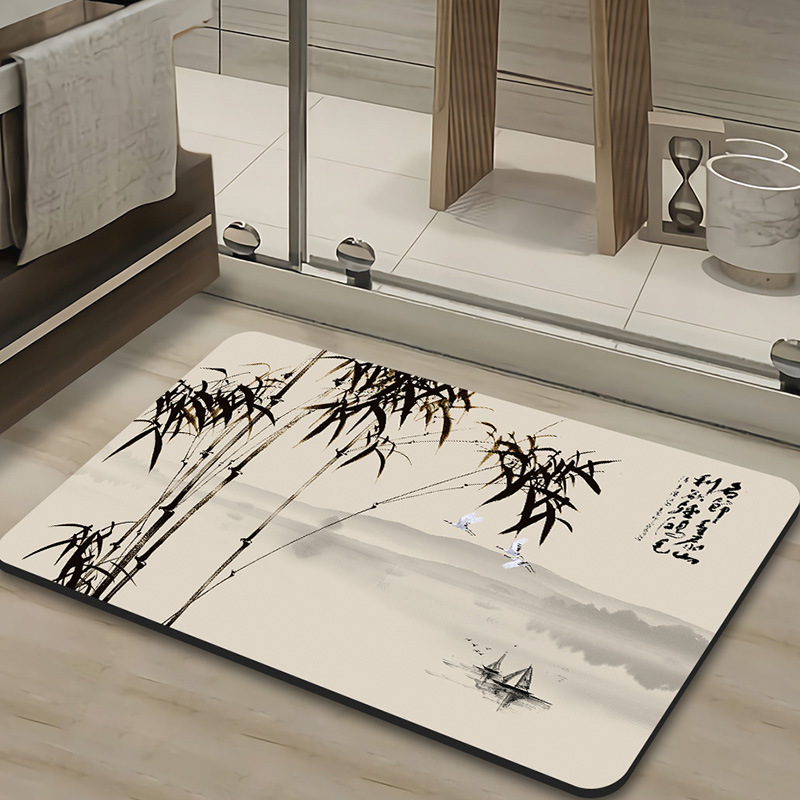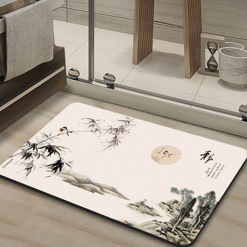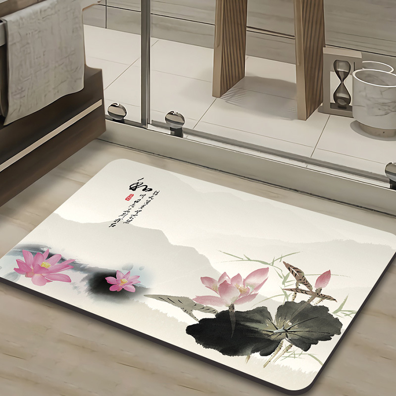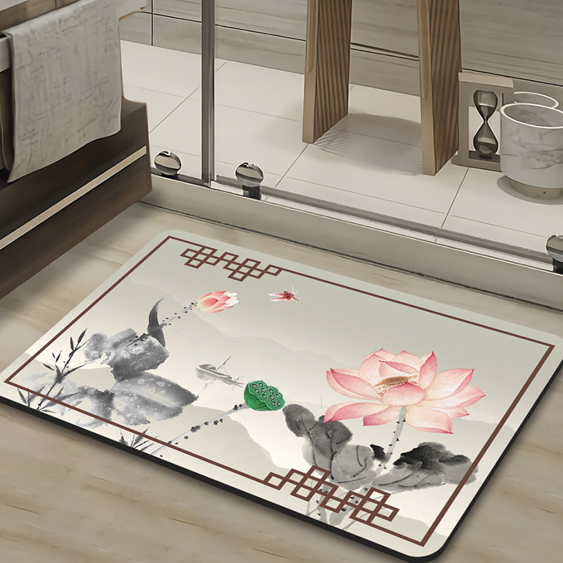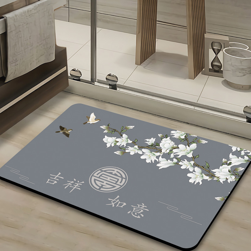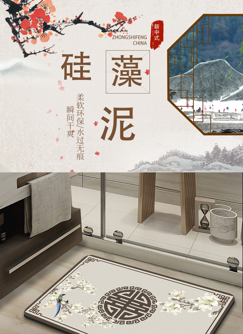 새로운 중국 스타일 Diatom 진흙 부드러운 바닥 매트 화장실 욕실 미끄럼 방지 발 매트 가정용 화장실 문 물 흡수성 빠른 건조 매트스토어 가기