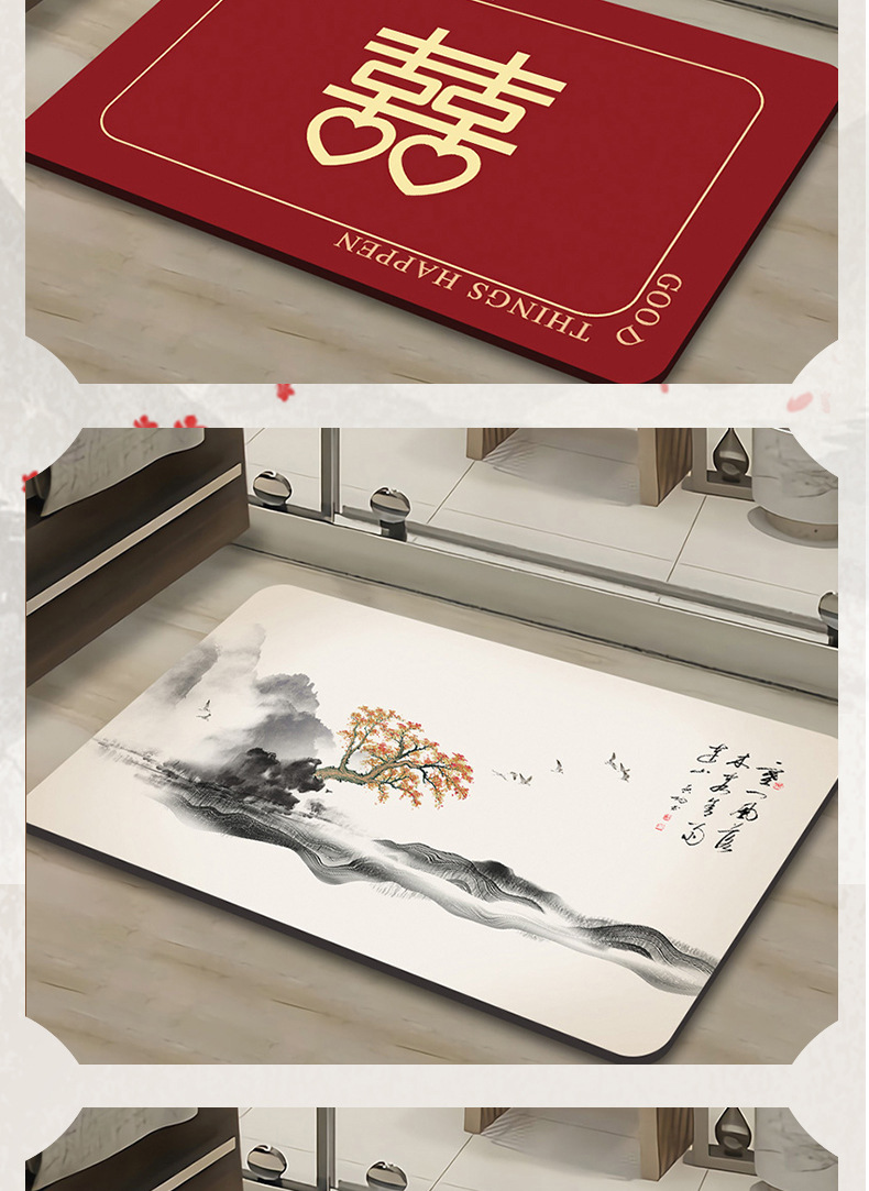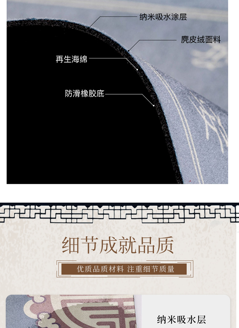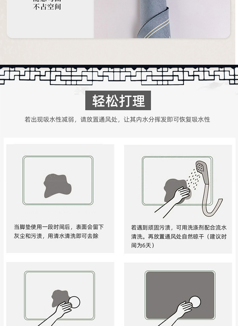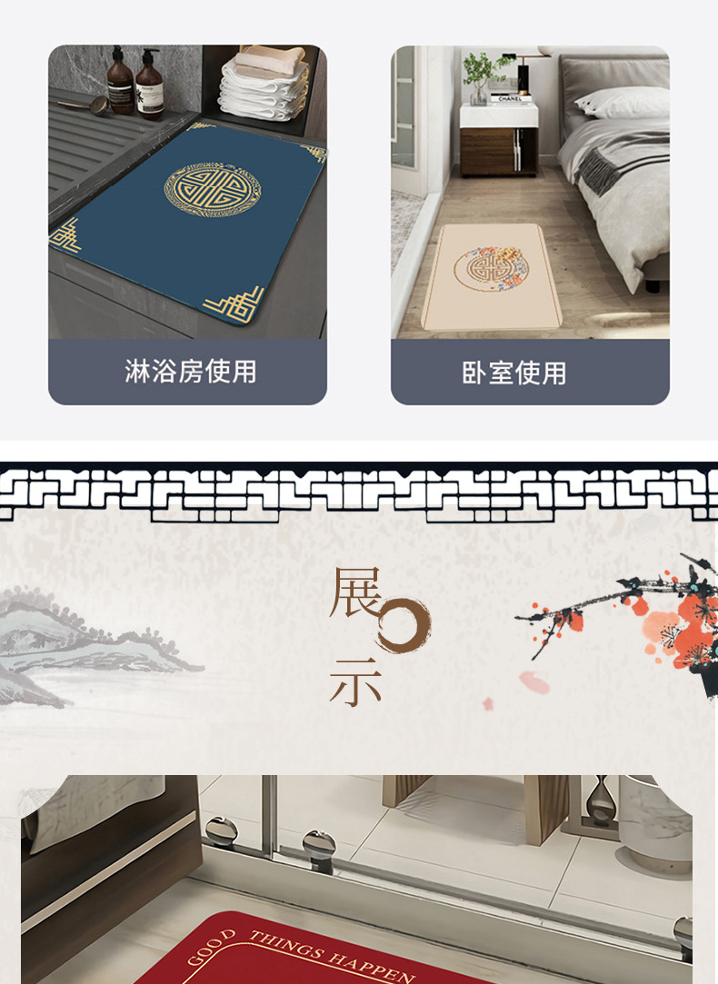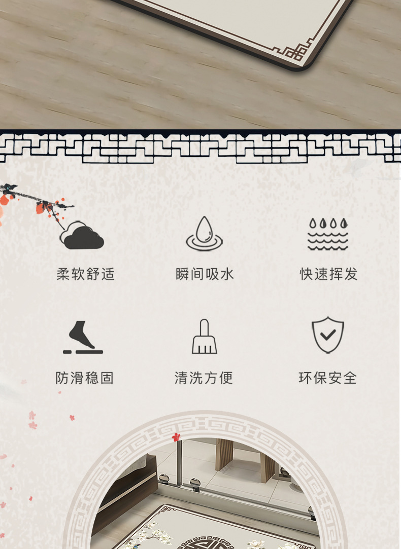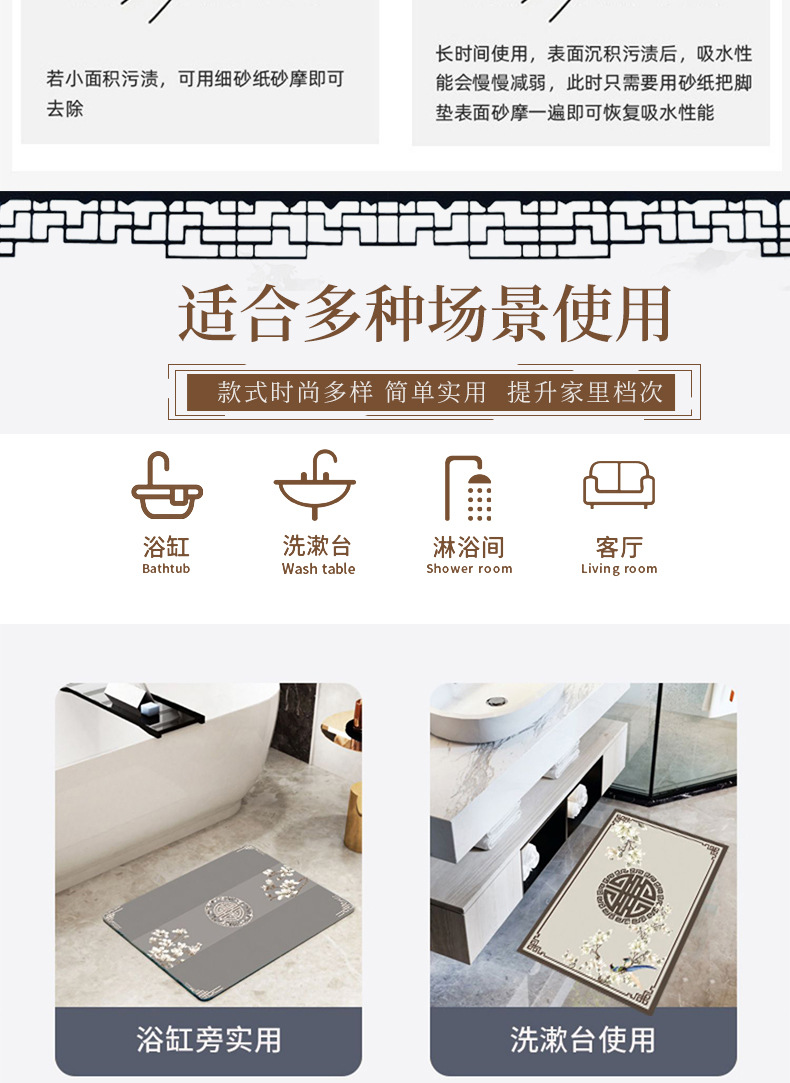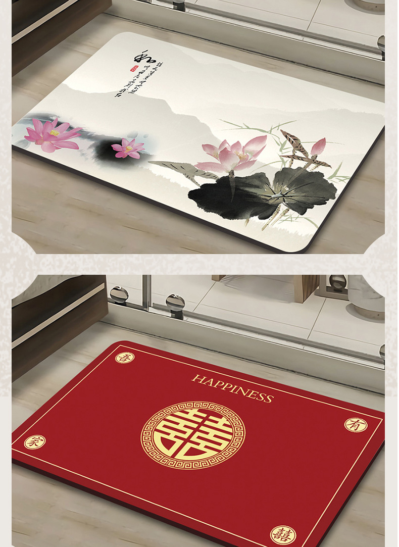 새로운 중국 스타일 Diatom 진흙 부드러운 바닥 매트 화장실 욕실 미끄럼 방지 발 매트 가정용 화장실 문 물 흡수성 빠른 건조 매트스토어 가기