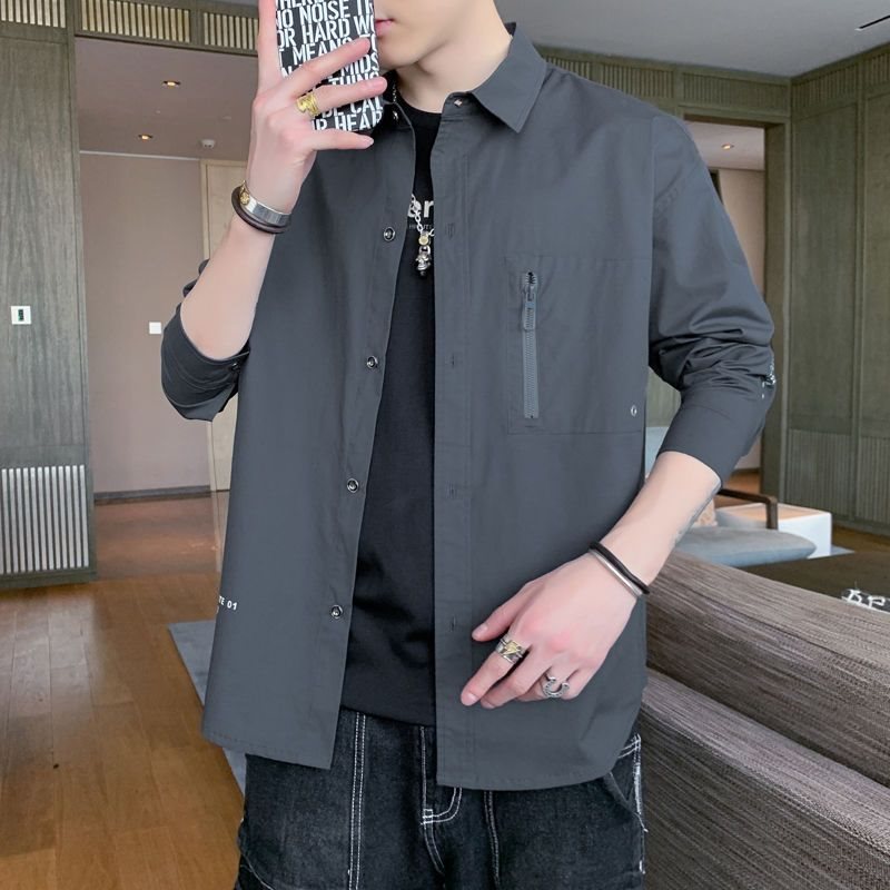 셔츠 남성 긴팔 여름 핸섬 셔츠 인 트렌드 홍콩 스타일 일본식 탑 얇은 캐주얼 워크 재킷