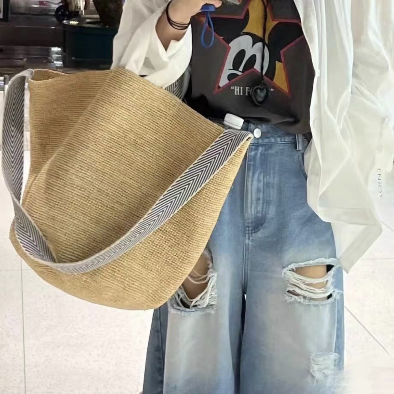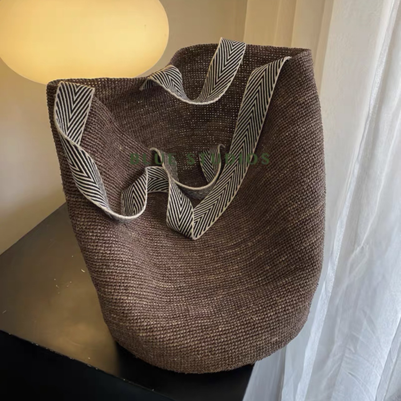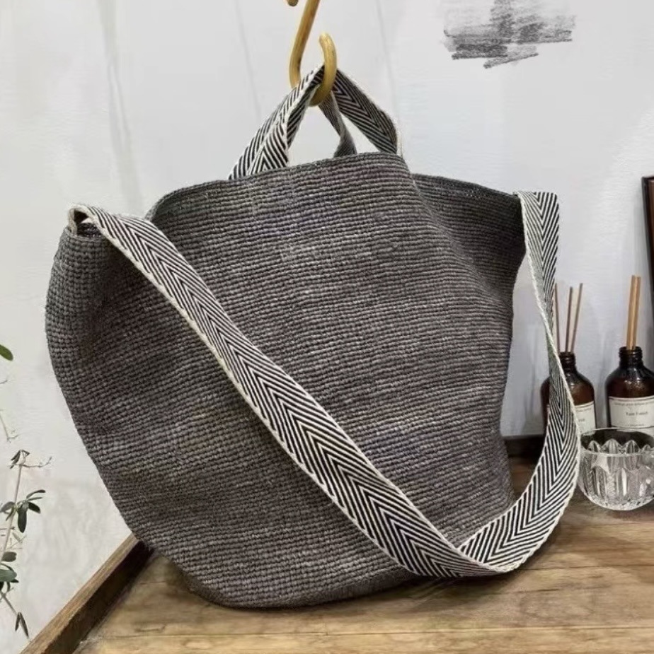 包包为天然草材质+纯手工编织与制作