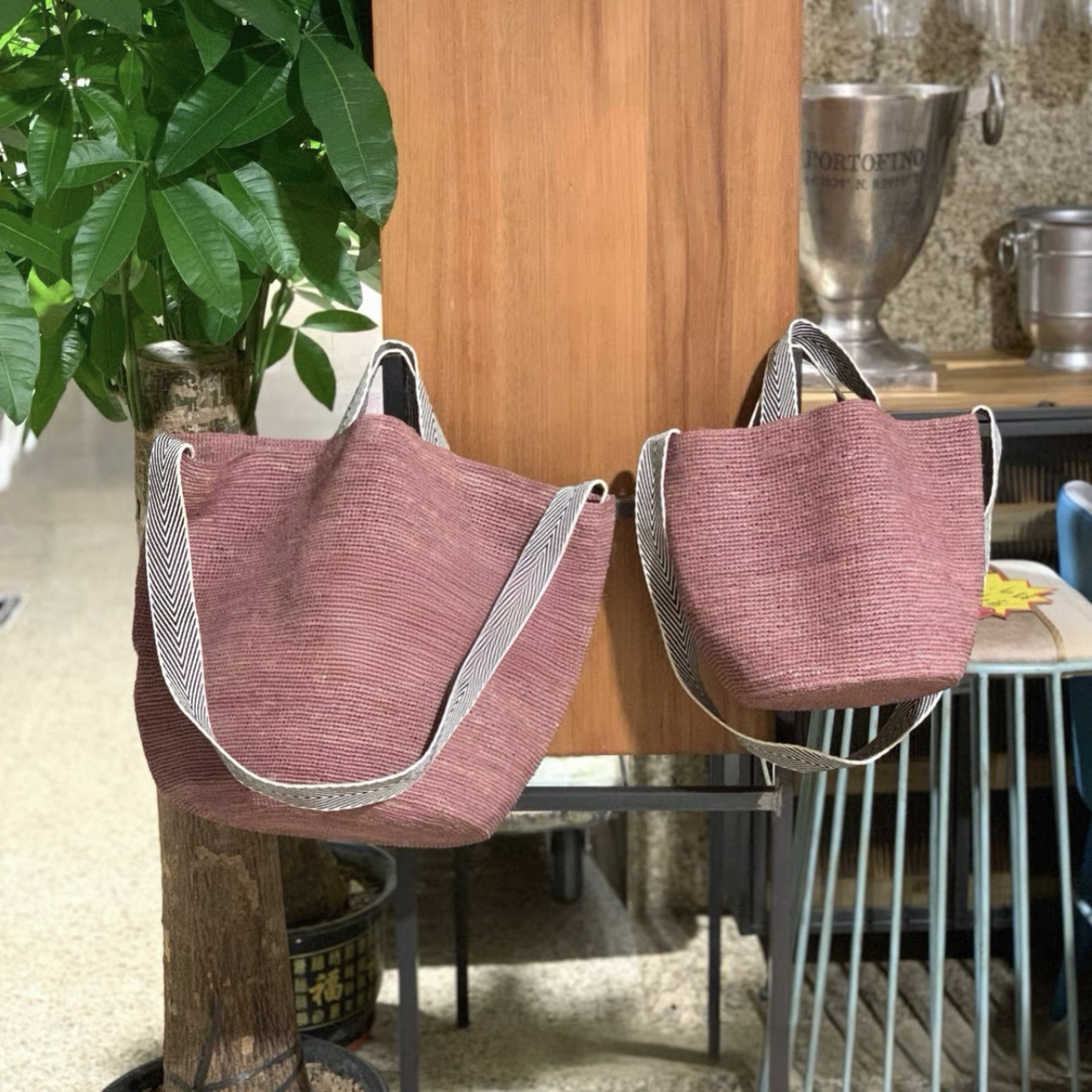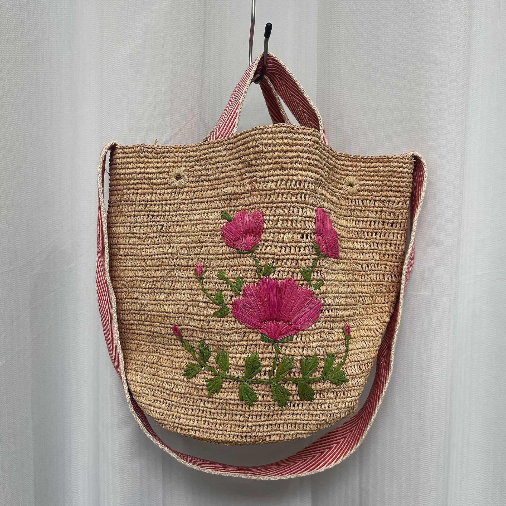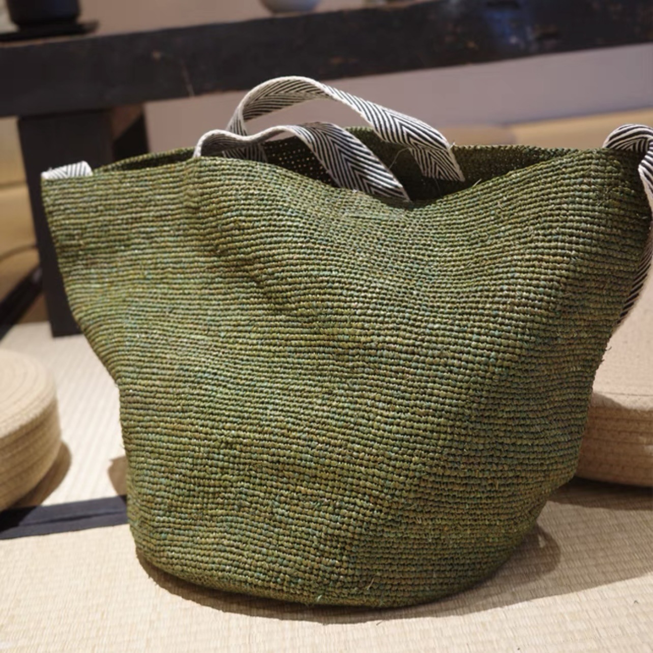 包包为天然草材质+纯手工编织与制作