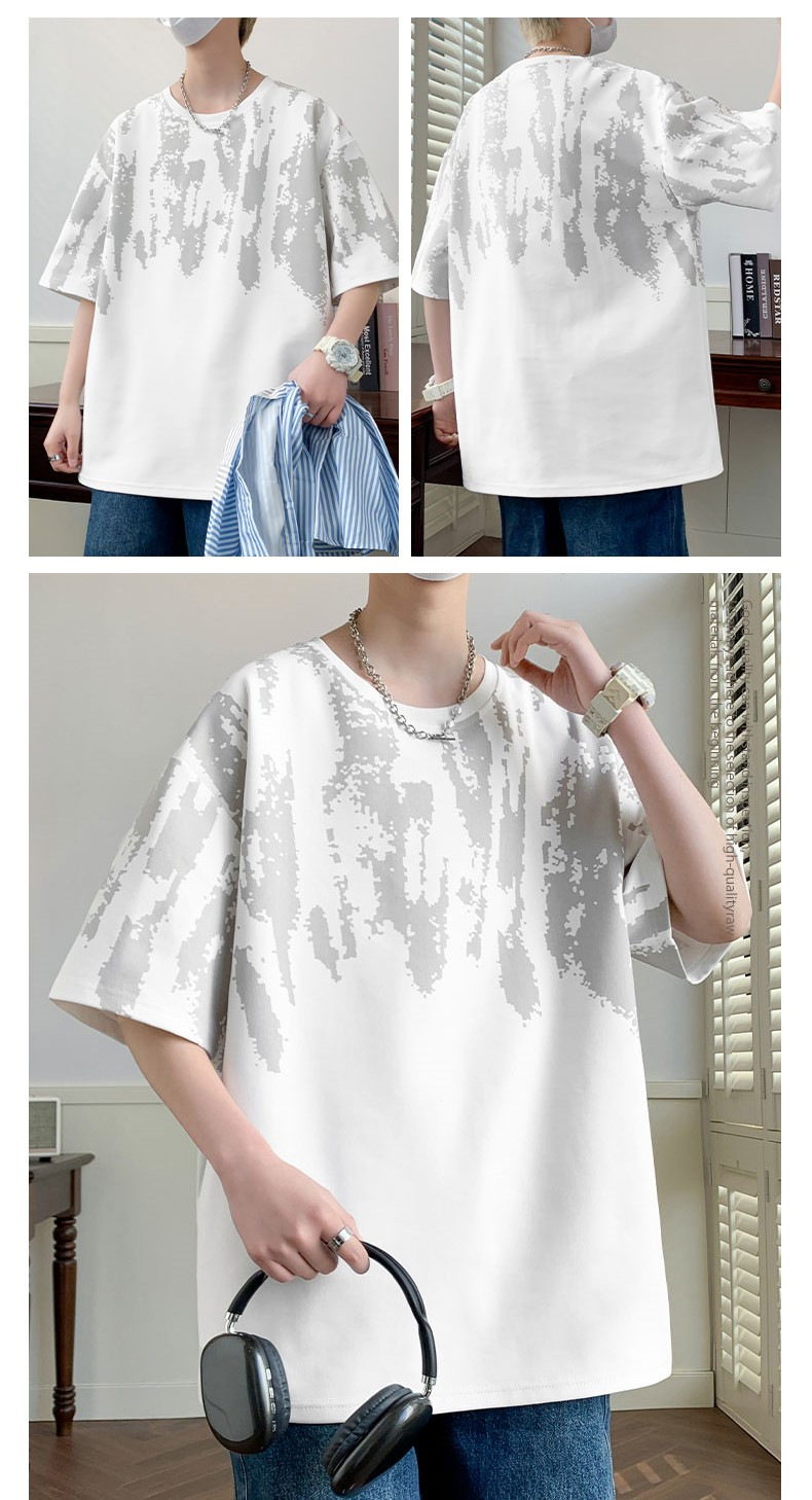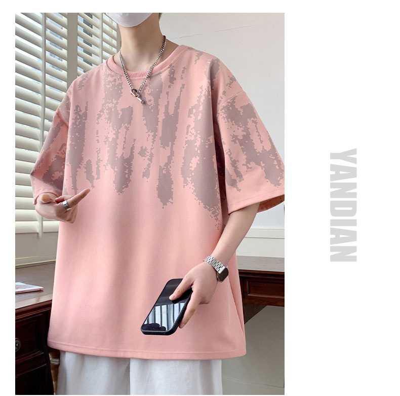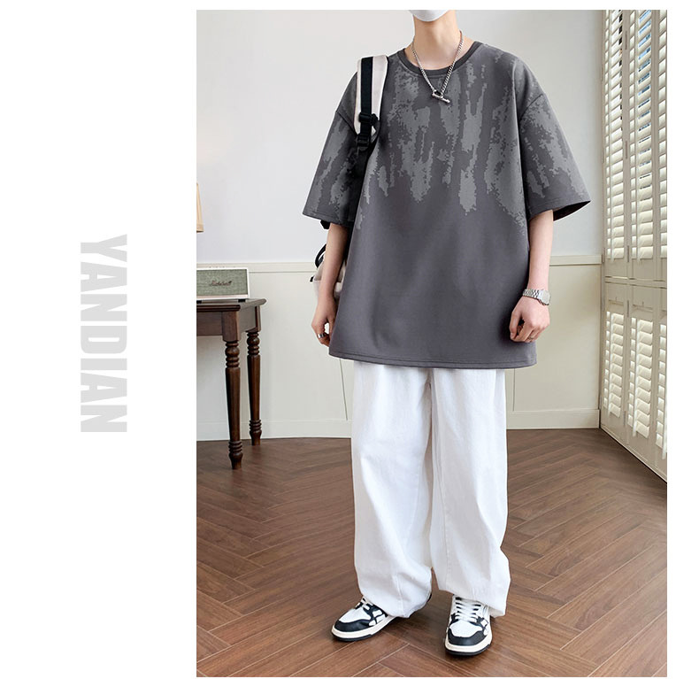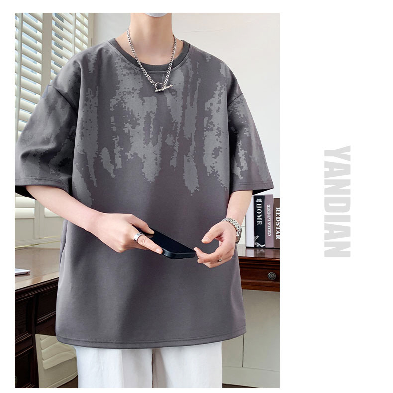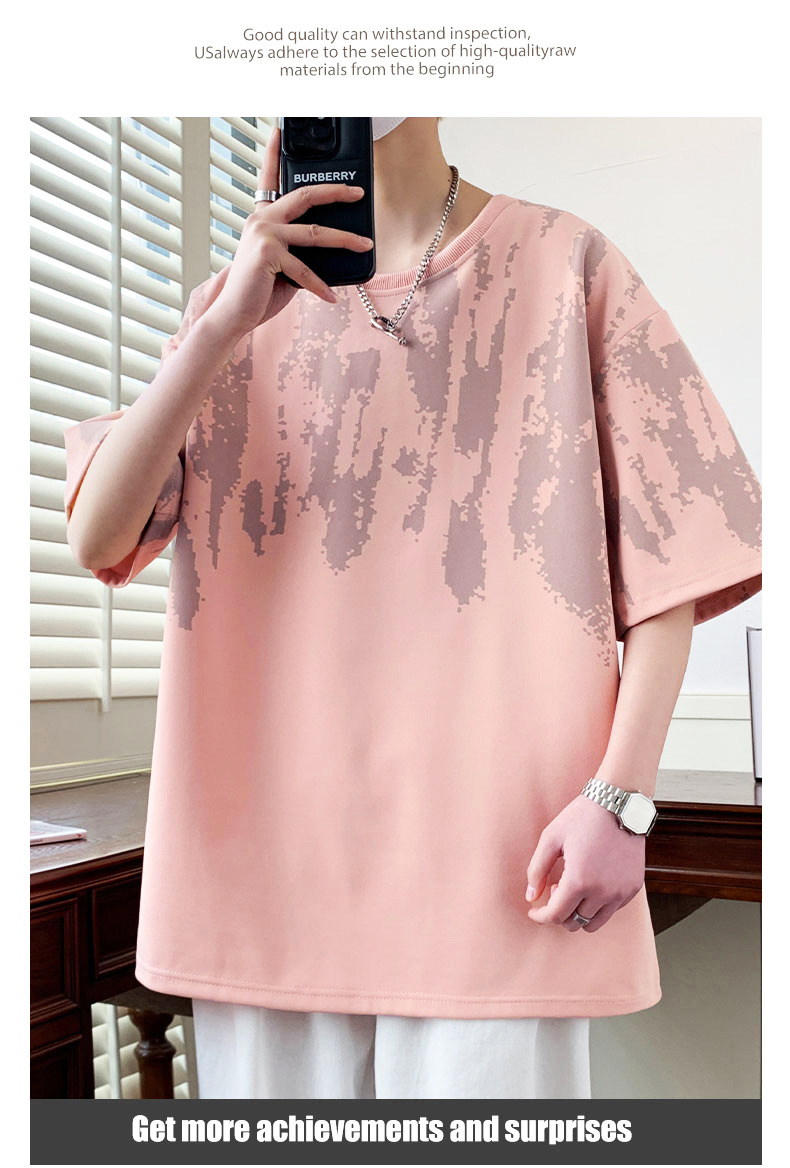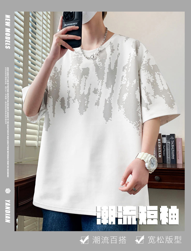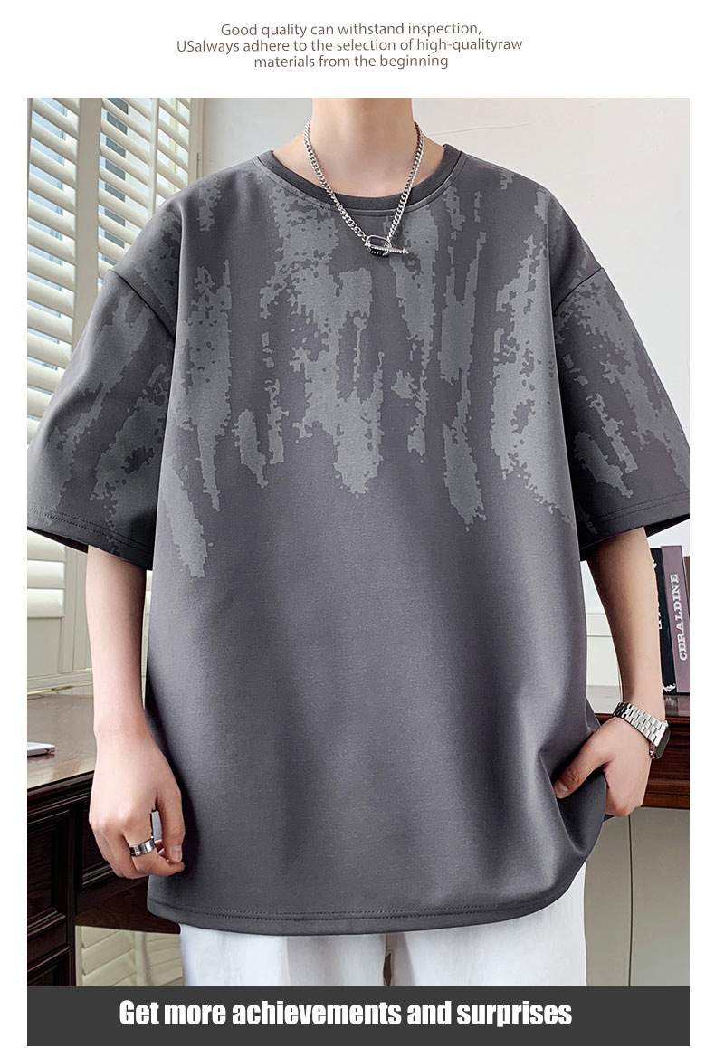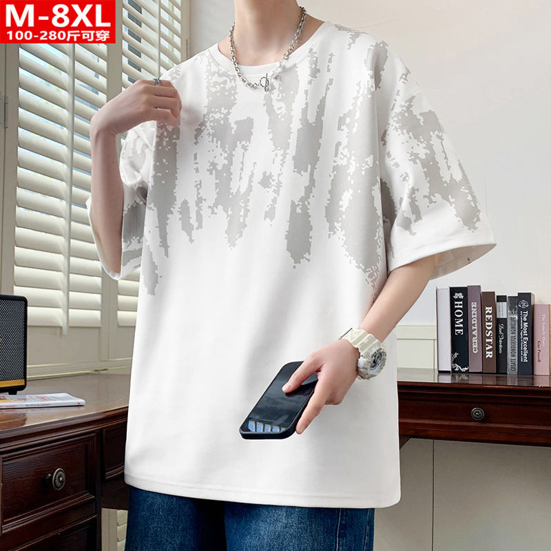 여름 유행 홍콩 스타일 남성 인쇄 라운드 넥 반팔 티셔츠 지방 남성 플러스 사이즈 플러스 사이즈 느슨한 캐주얼 티셔츠스토어 가기