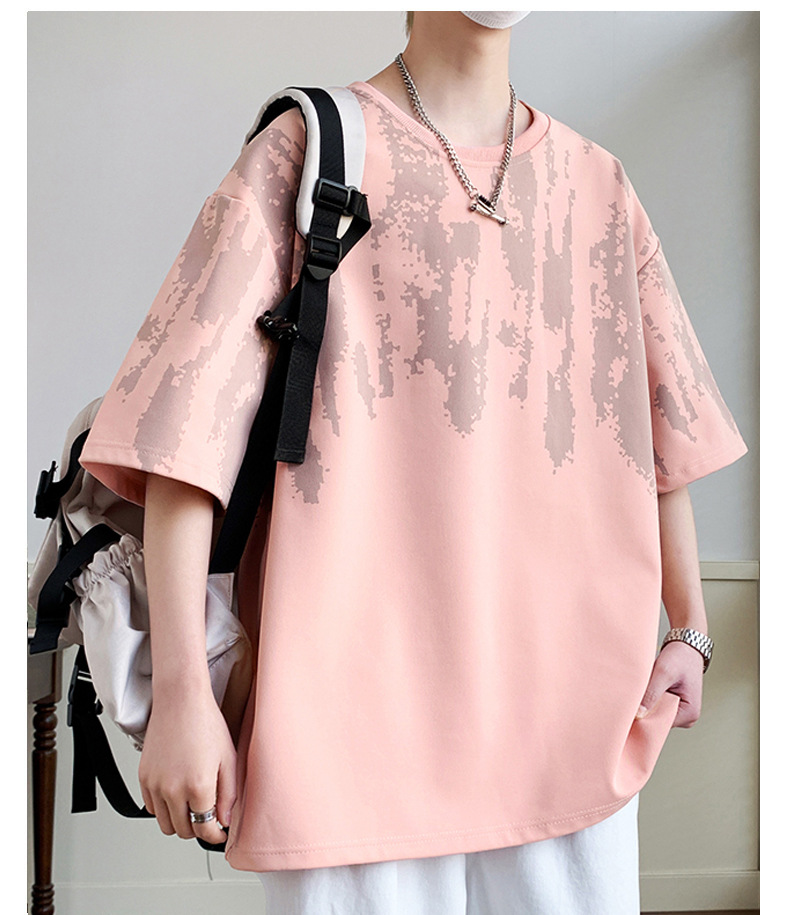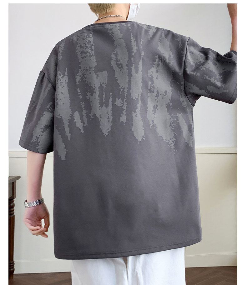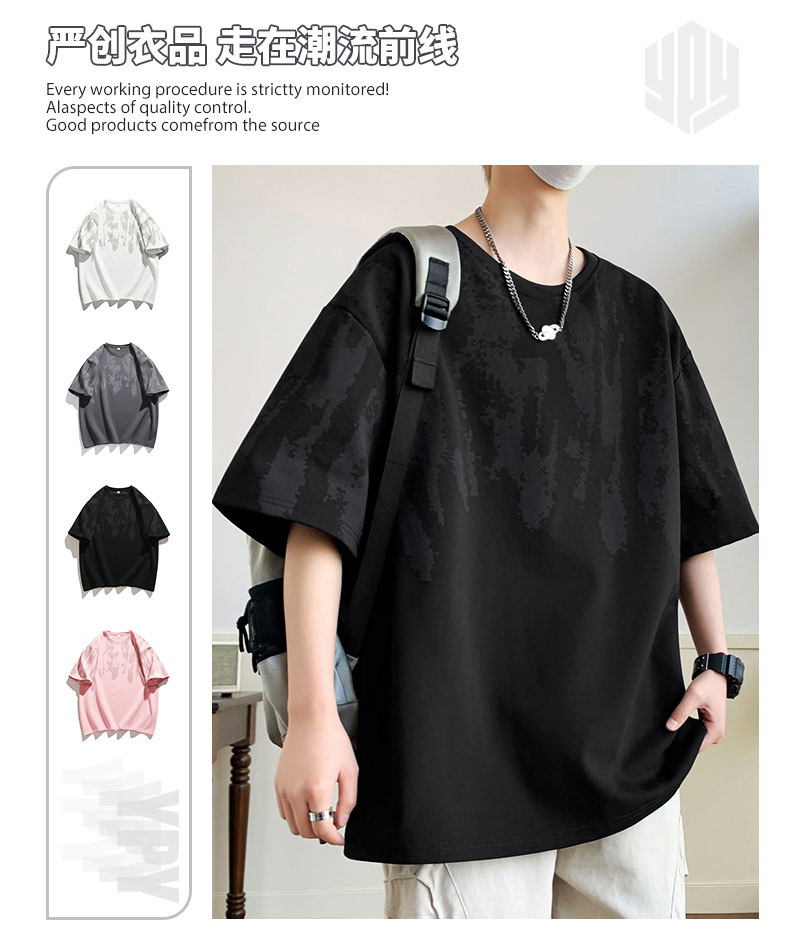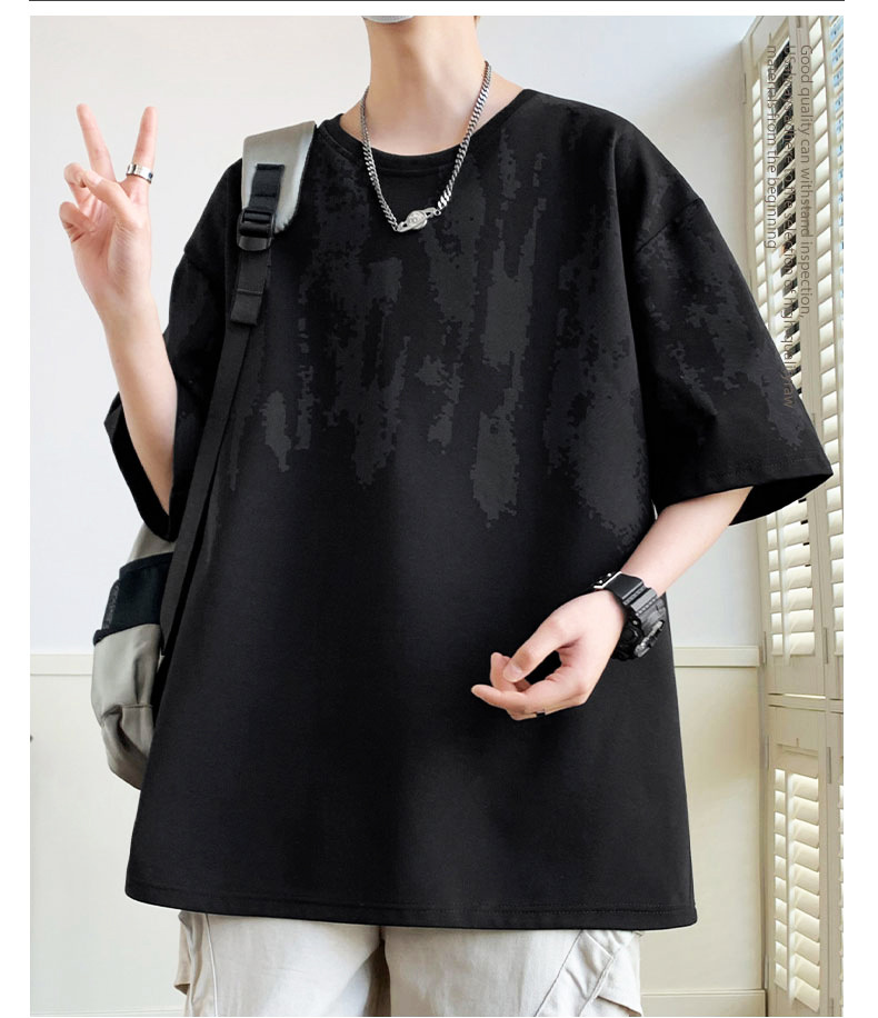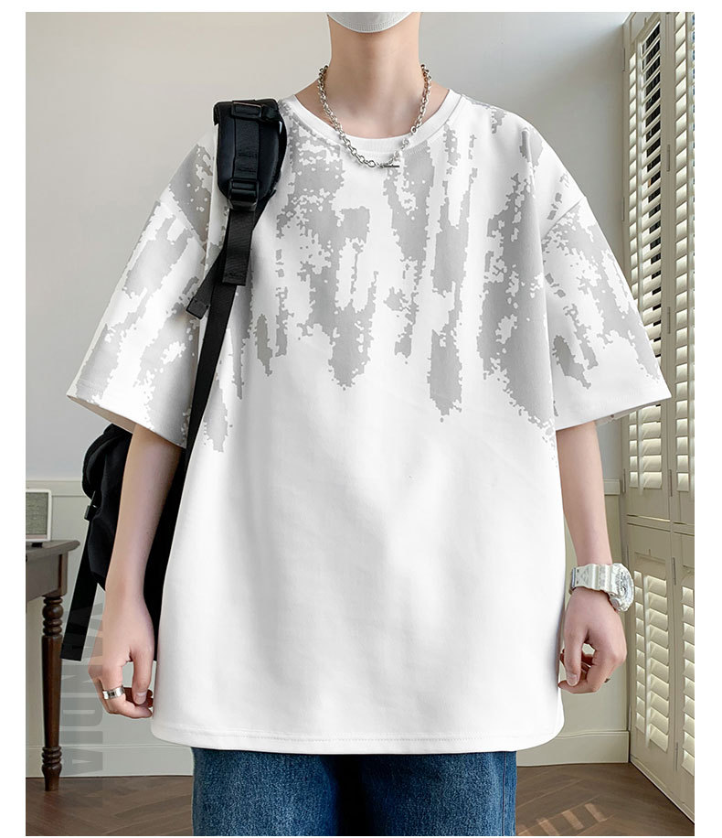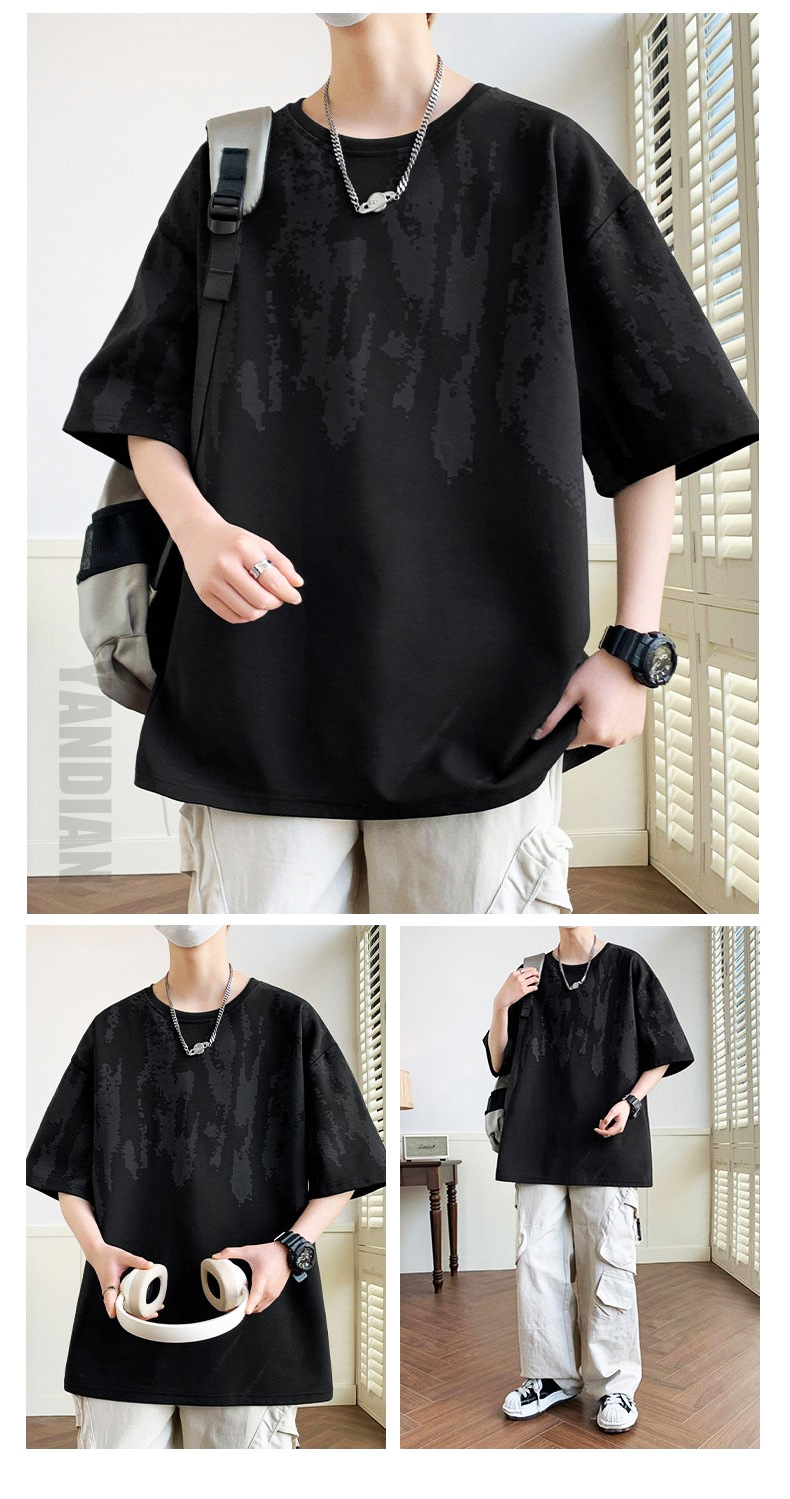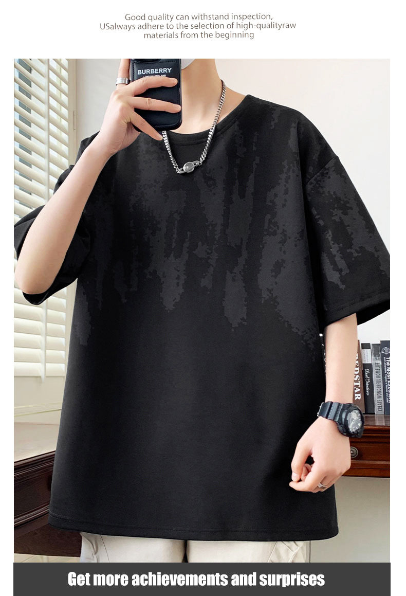 여름 유행 홍콩 스타일 남성 인쇄 라운드 넥 반팔 티셔츠 지방 남성 플러스 사이즈 플러스 사이즈 느슨한 캐주얼 티셔츠스토어 가기