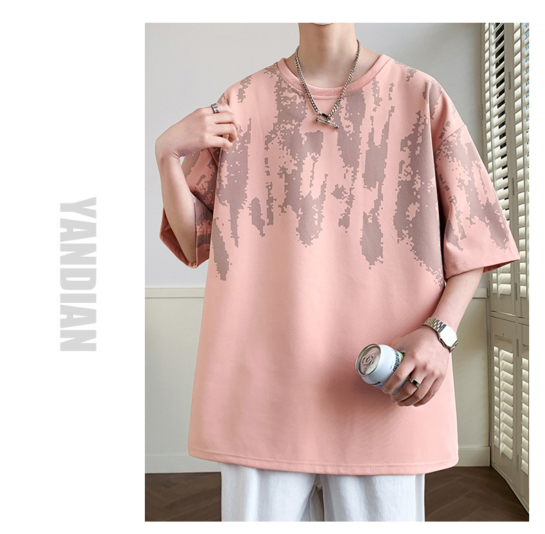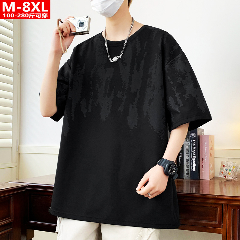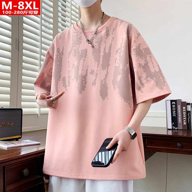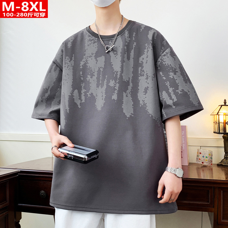 여름 유행 홍콩 스타일 남성 인쇄 라운드 넥 반팔 티셔츠 지방 남성 플러스 사이즈 플러스 사이즈 느슨한 캐주얼 티셔츠