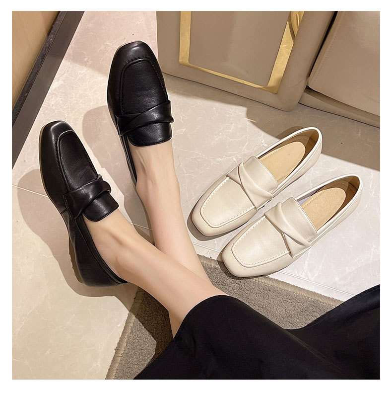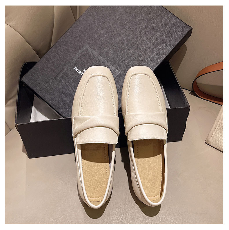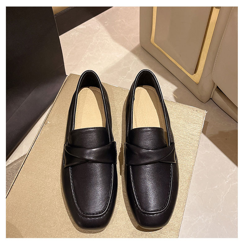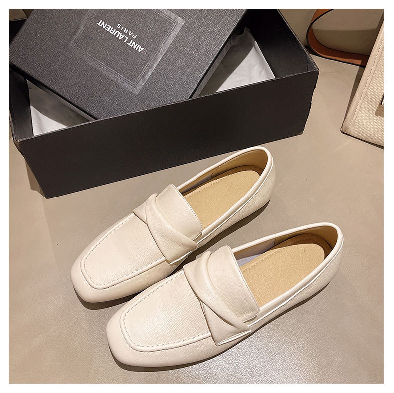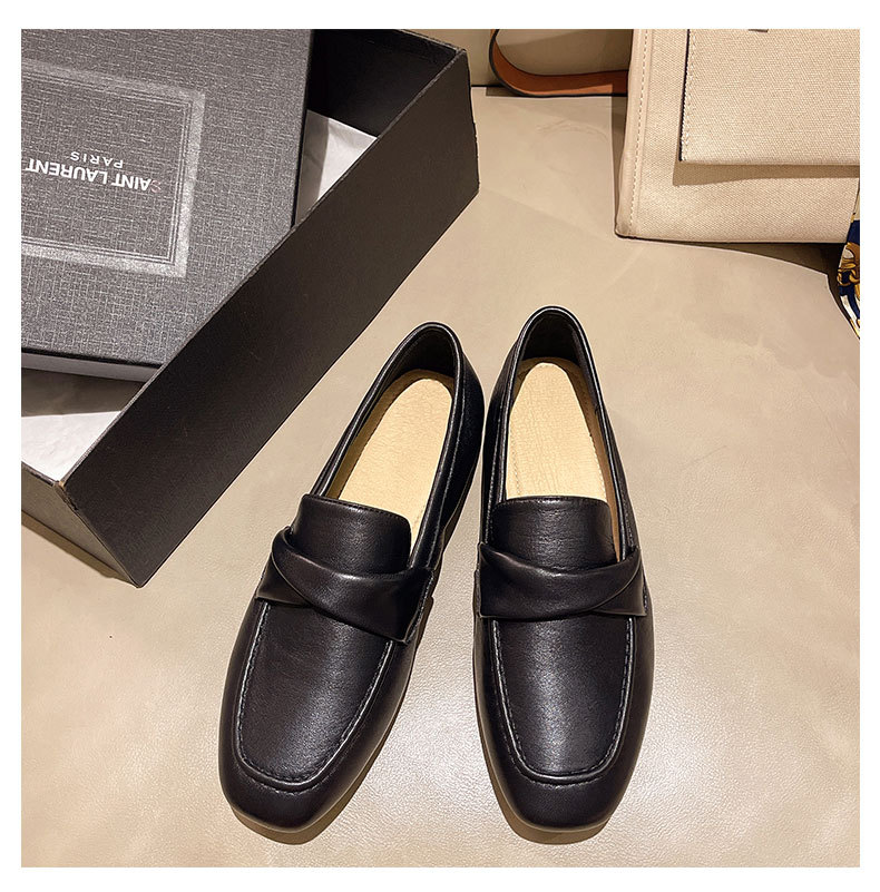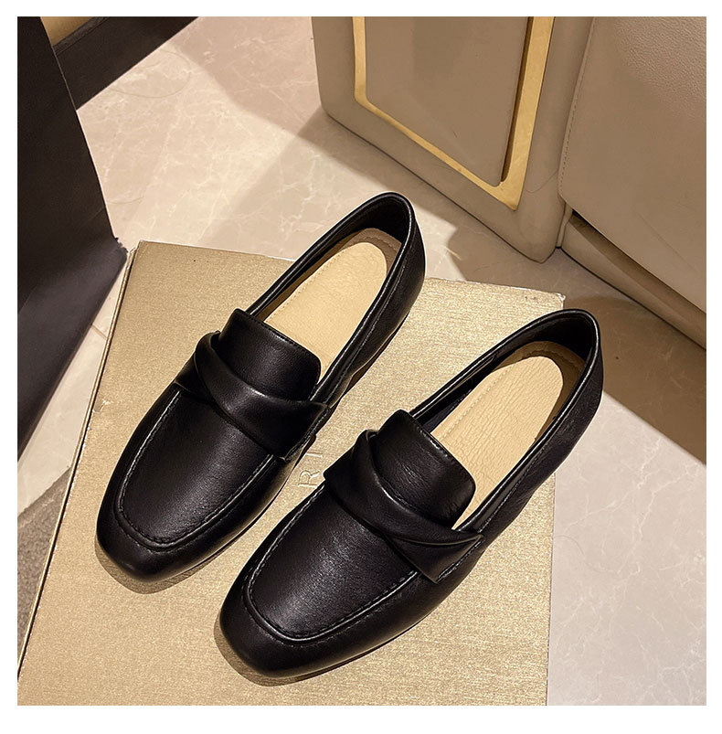 여성을위한 첫 번째 레이어 양피 플랫 신발 여름 새로운 광장 발가락 영국 스타일 슬립 온 캐주얼 다목적 로퍼