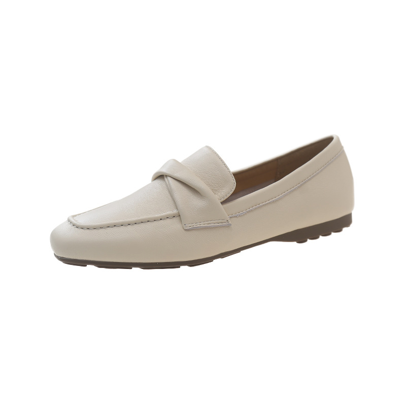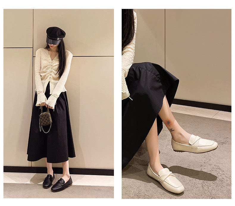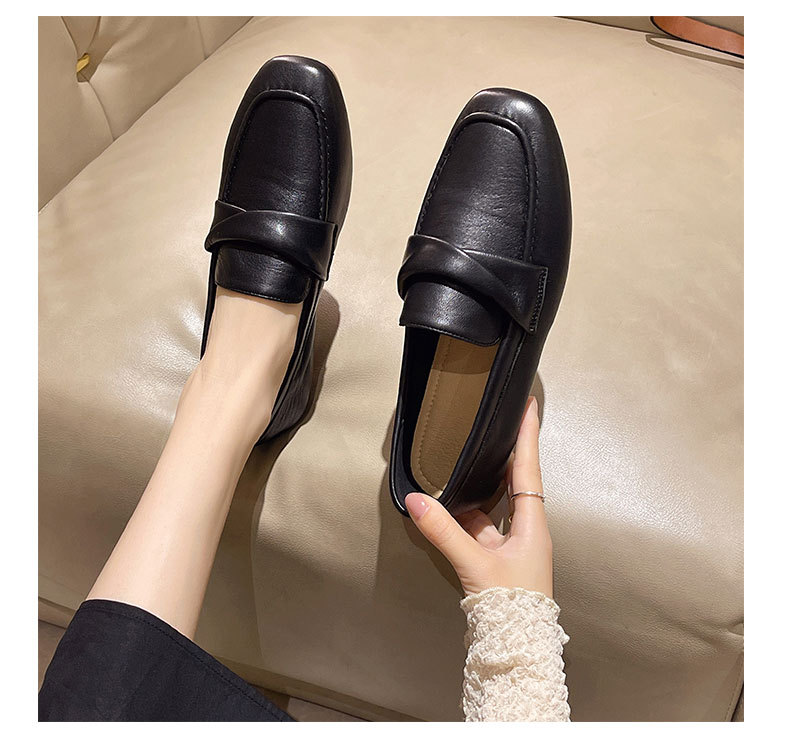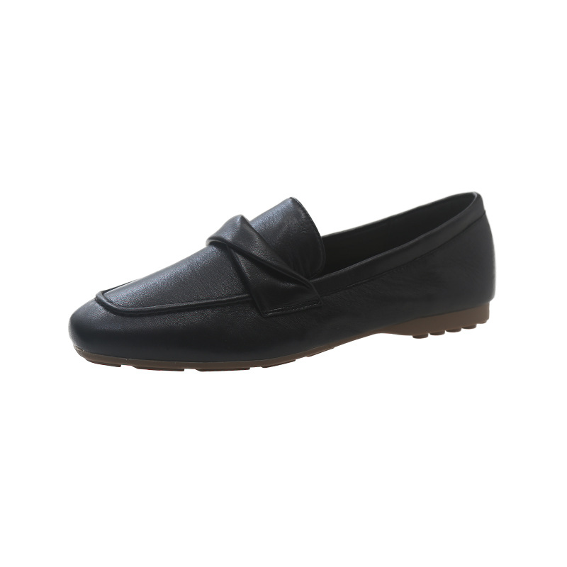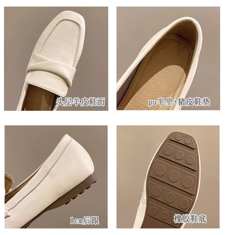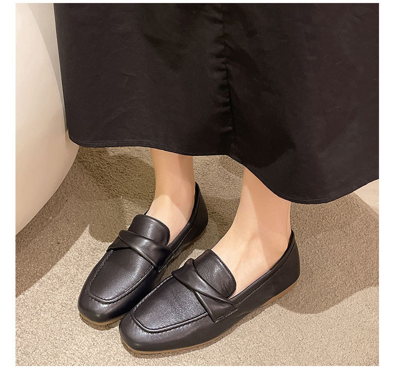 여성을위한 첫 번째 레이어 양피 플랫 신발 여름 새로운 광장 발가락 영국 스타일 슬립 온 캐주얼 다목적 로퍼