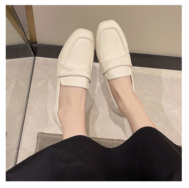 여성을위한 첫 번째 레이어 양피 플랫 신발 여름 새로운 광장 발가락 영국 스타일 슬립 온 캐주얼 다목적 로퍼스토어 가기
