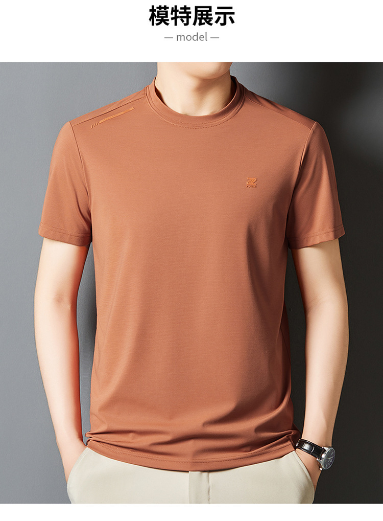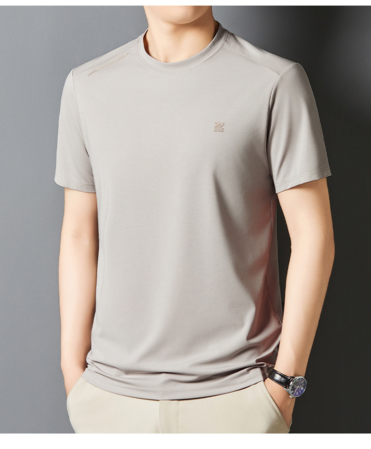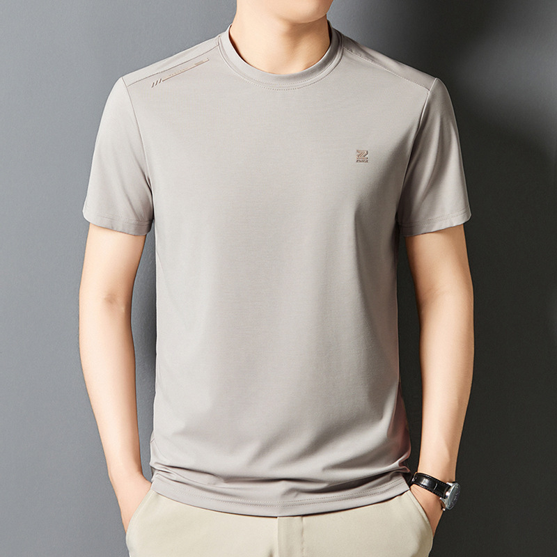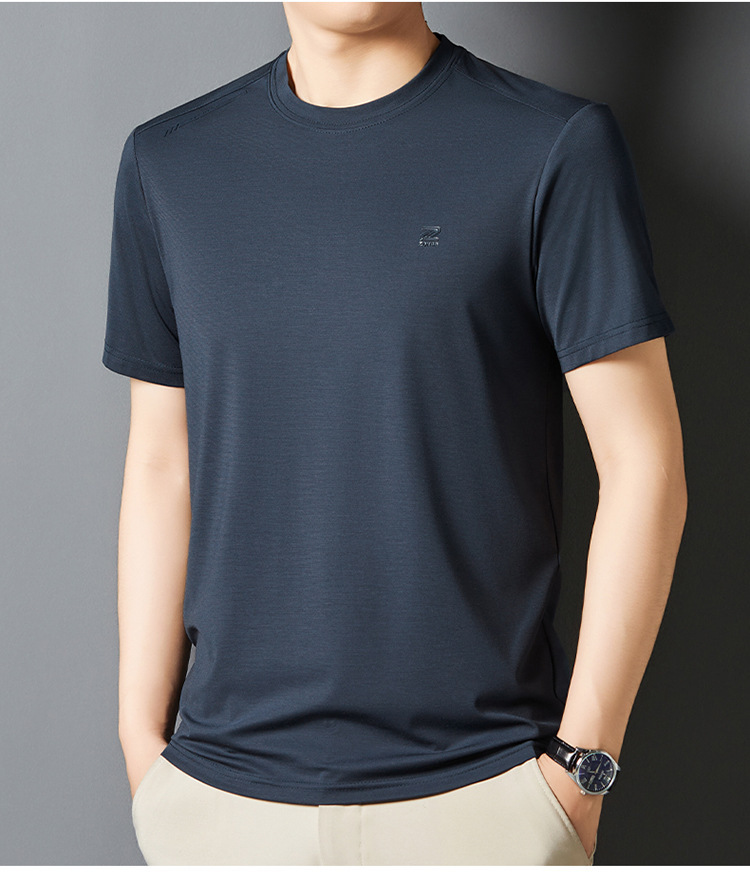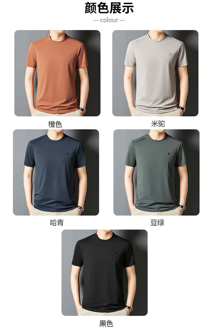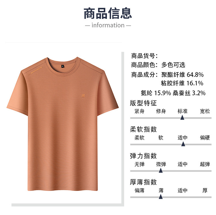 夏季新款桑蚕丝纯色短袖T恤男士圆领透气半袖薄款休闲上衣体恤男