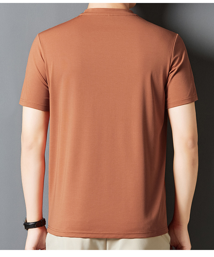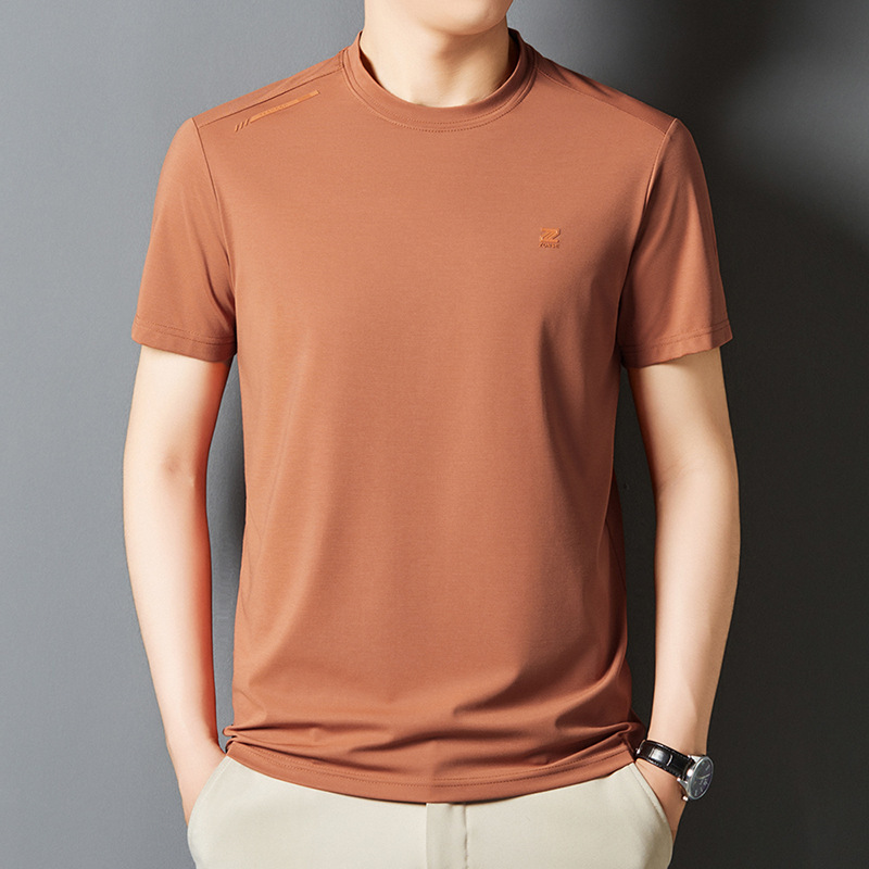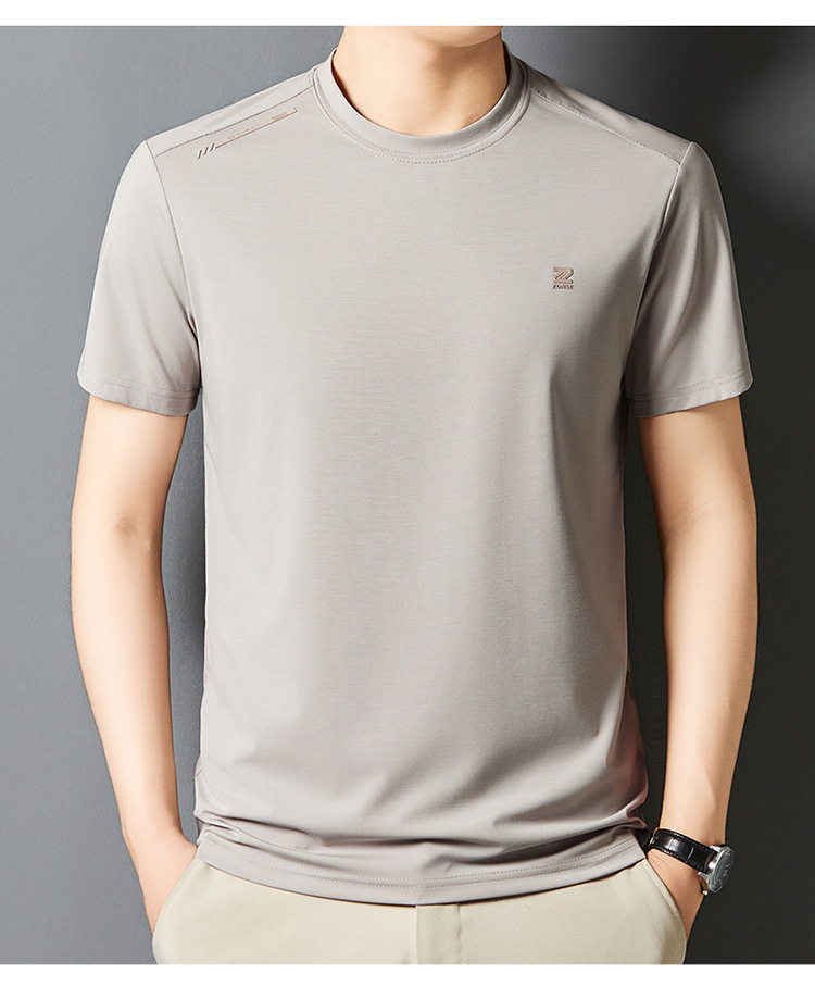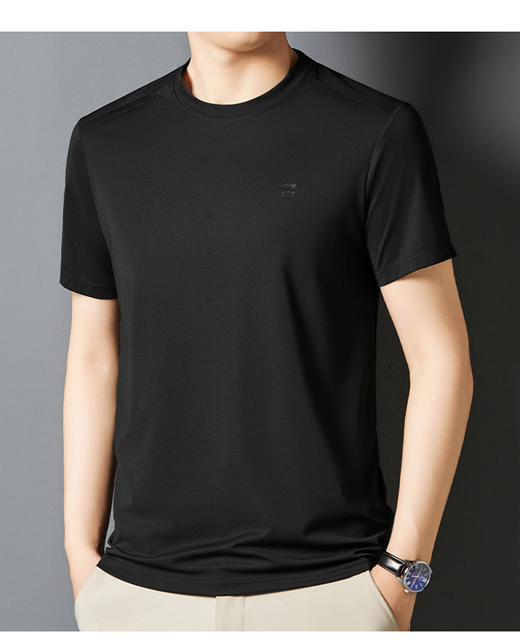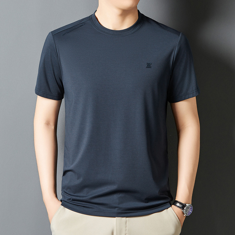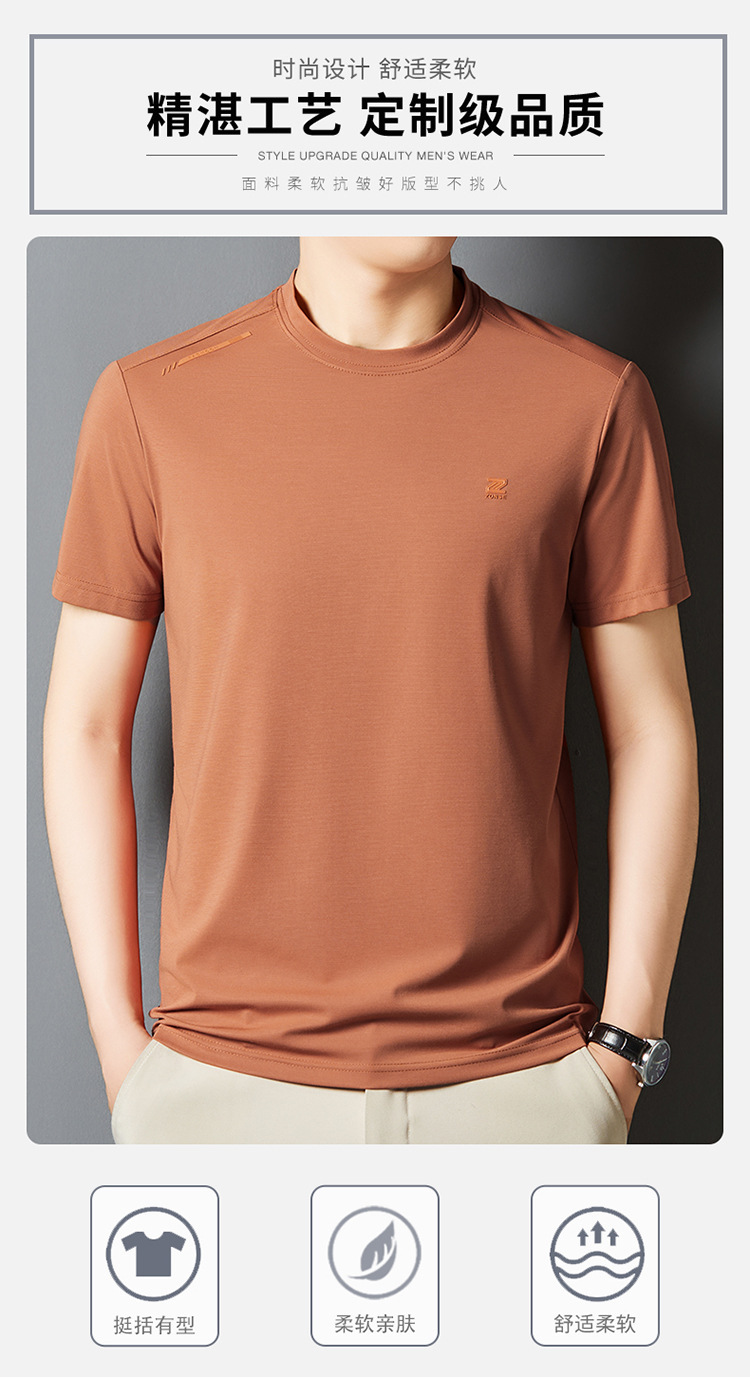 夏季新款桑蚕丝纯色短袖T恤男士圆领透气半袖薄款休闲上衣体恤男