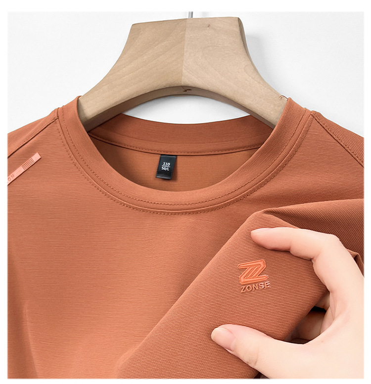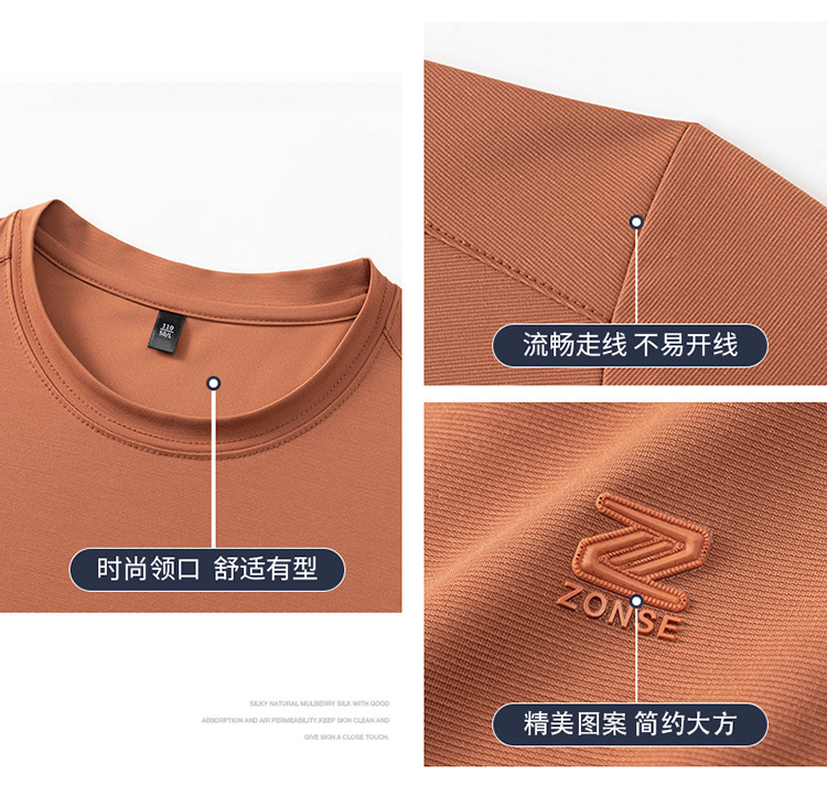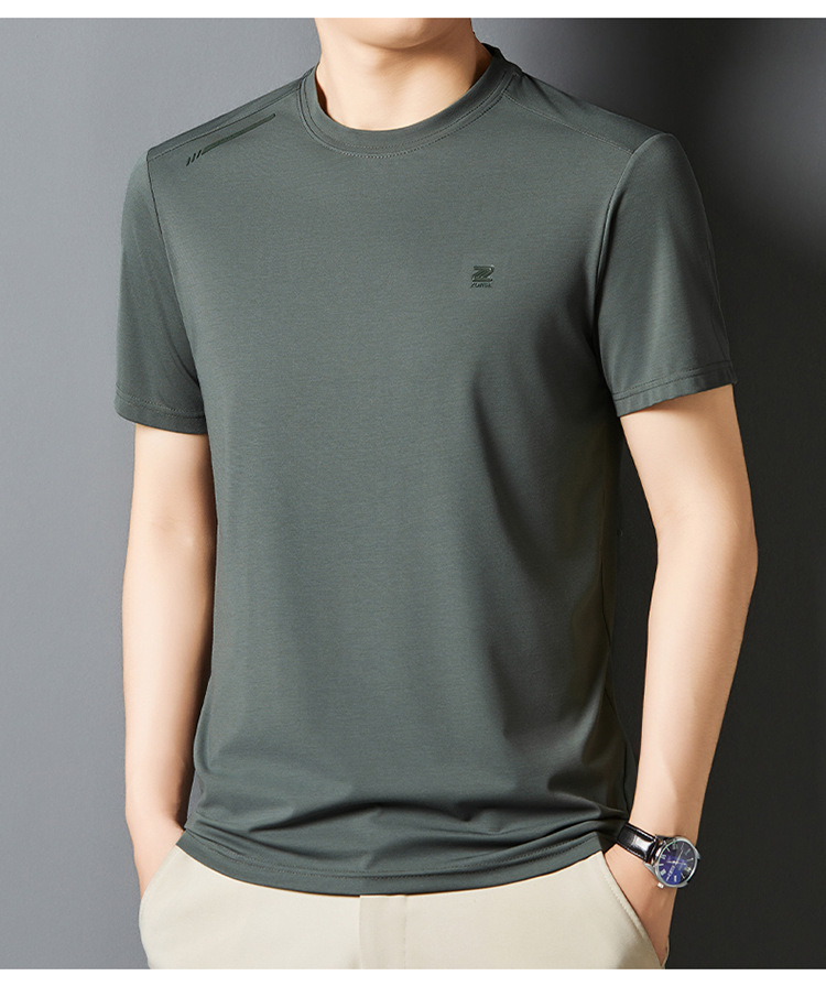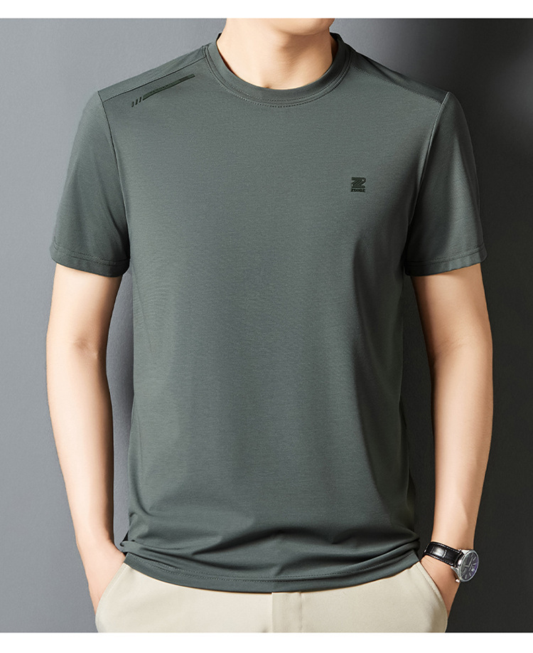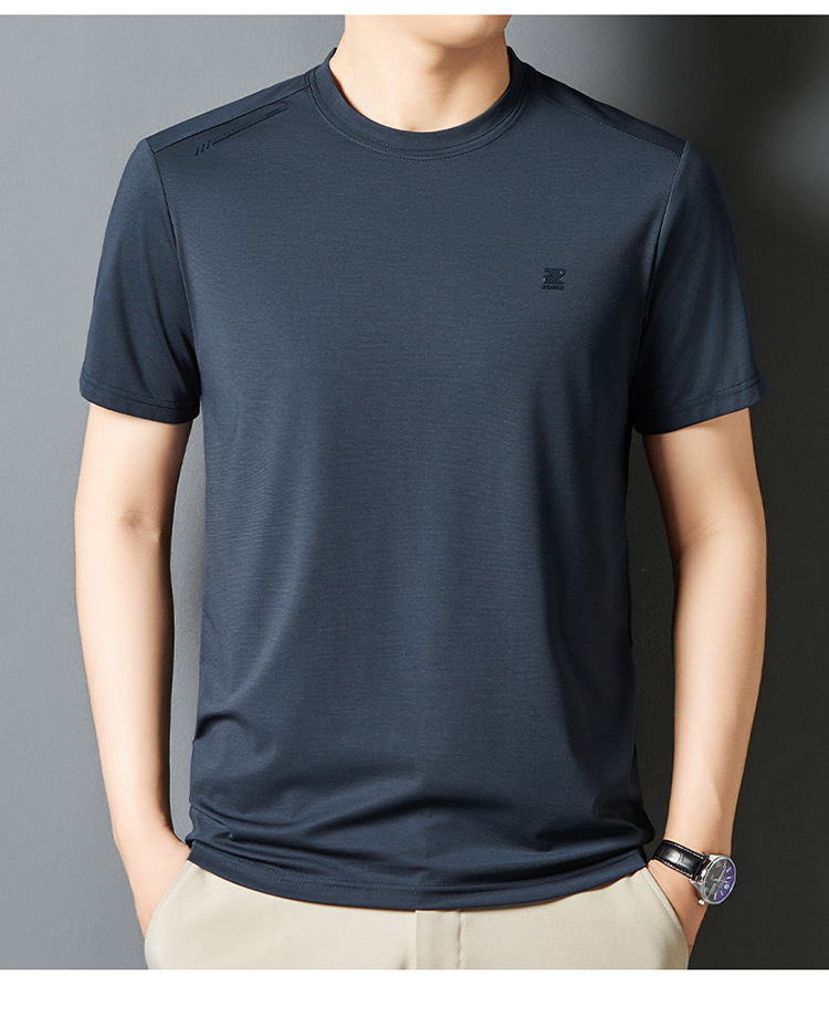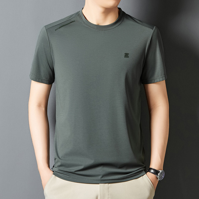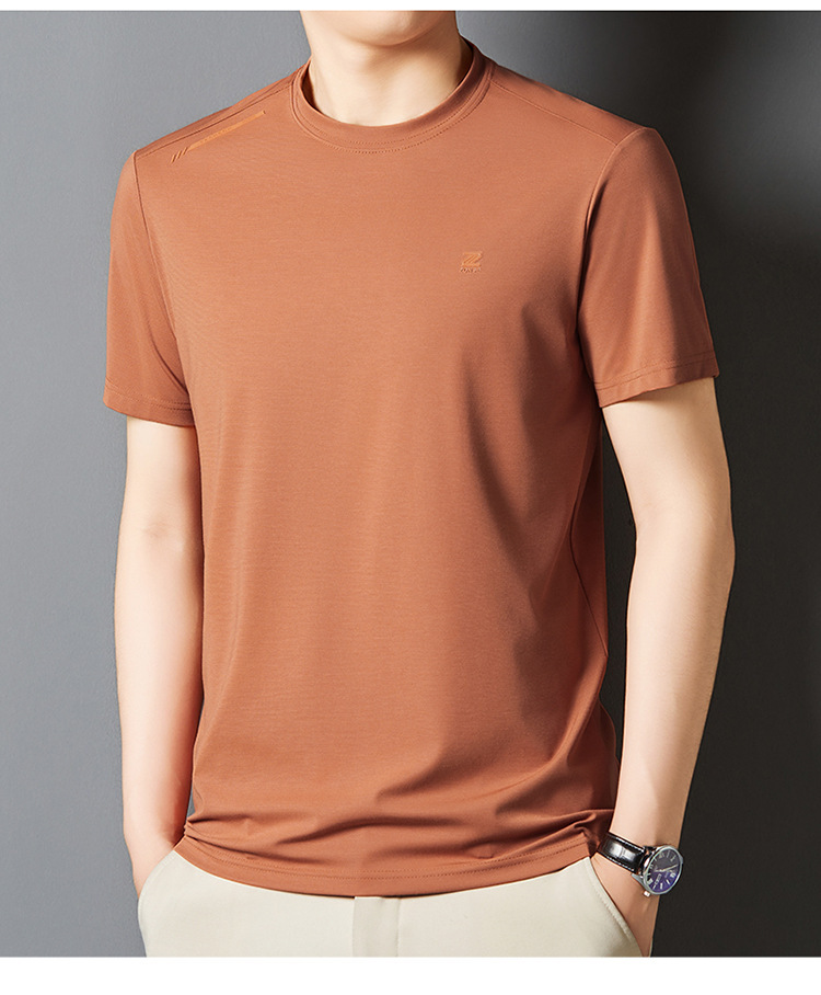 夏季新款桑蚕丝纯色短袖T恤男士圆领透气半袖薄款休闲上衣体恤男