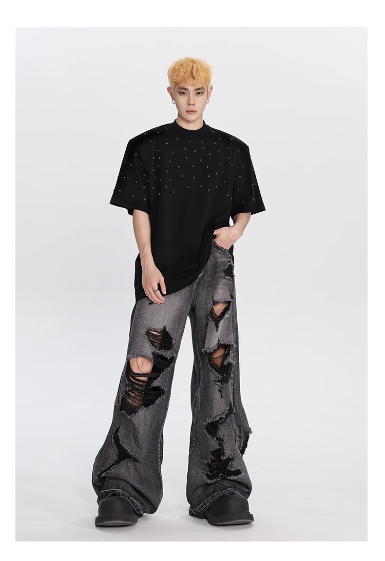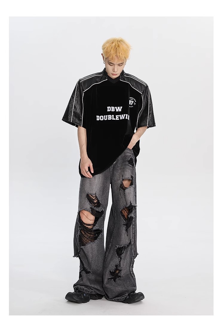 미국식 하이 스트리트 트렌디 남녀 동일 컷 거지의 데님 바지 올 매치 힙합 틈새 디자인 트렌디 바지스토어 가기
