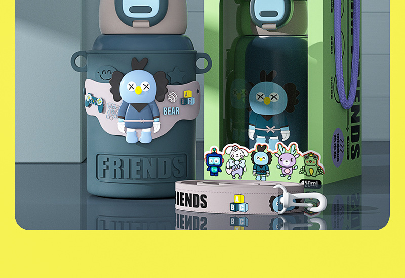만화 캐릭터 어린이 귀여운 인형 보온병, 예쁜 디자인의 귀여운 어린이 빨대컵, 316 스테인리스 휴대용 물병