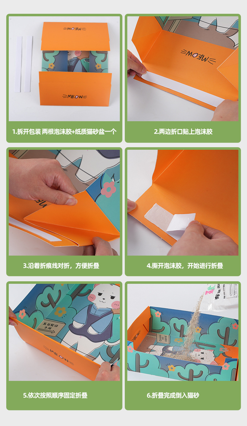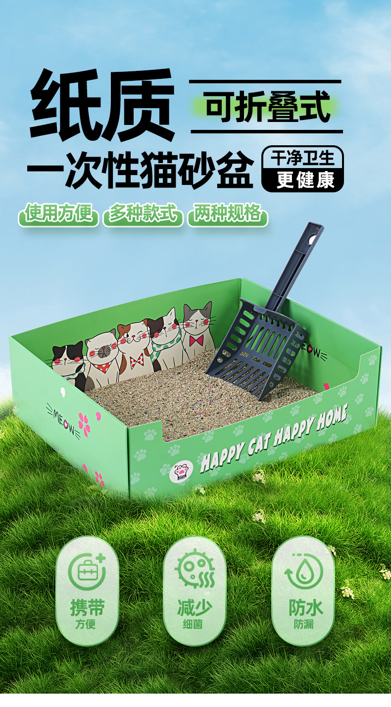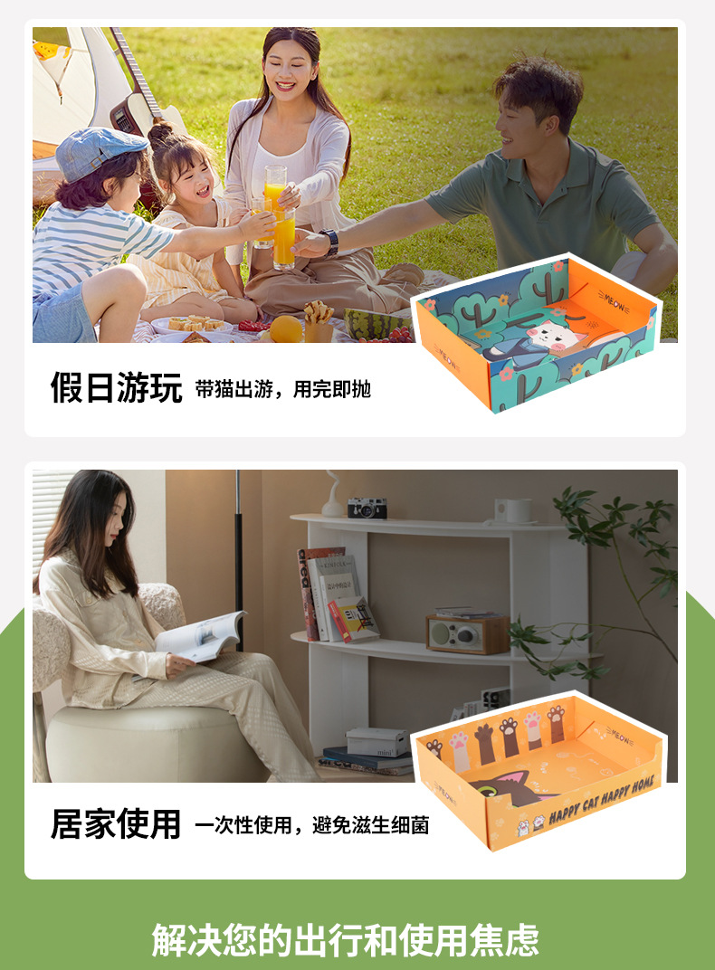 일회용 종이 고양이 쓰레기 분지 휴대용 접이식 외출 마차 두꺼운 애완 동물 고양이 화장실 용품