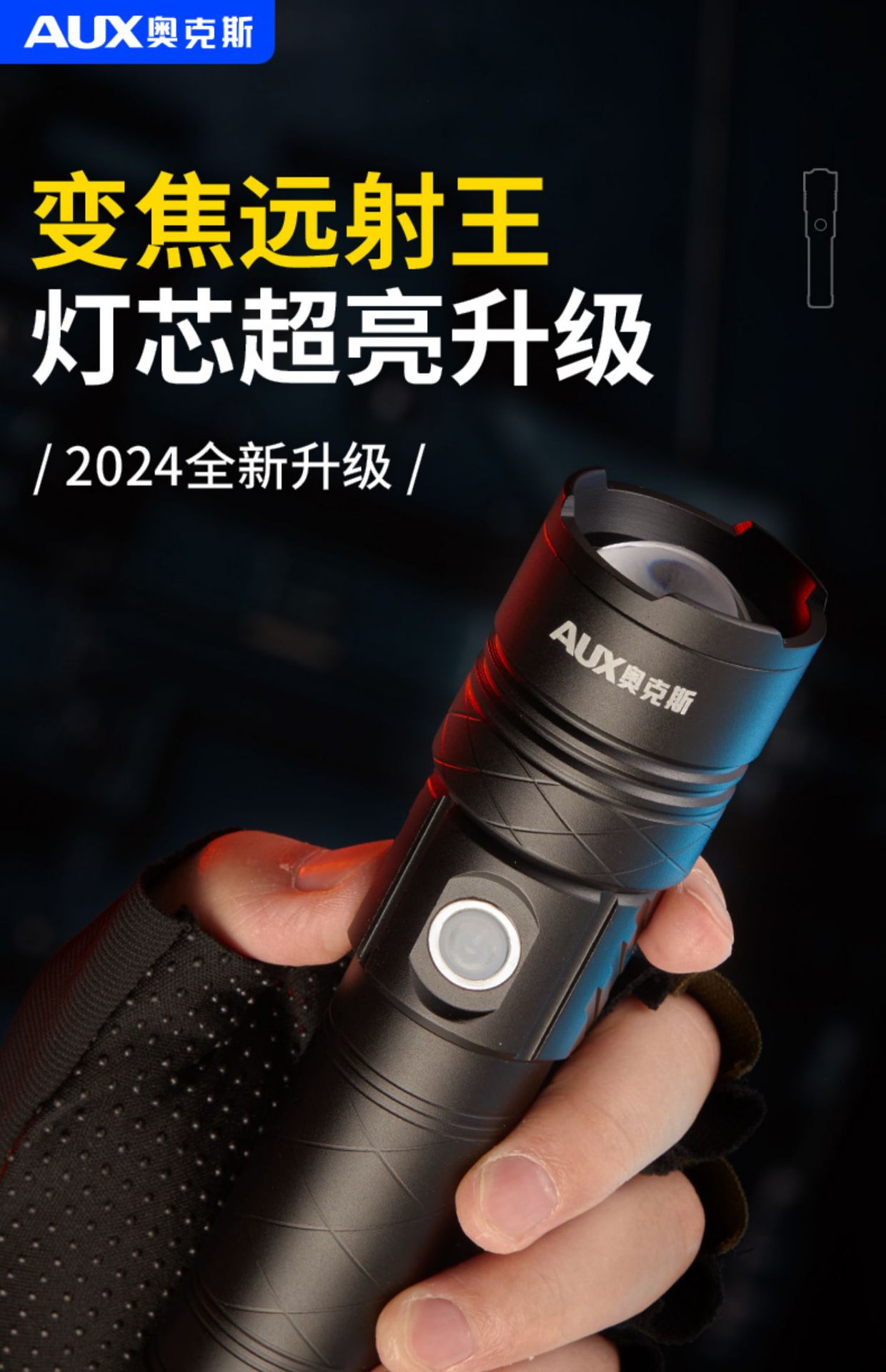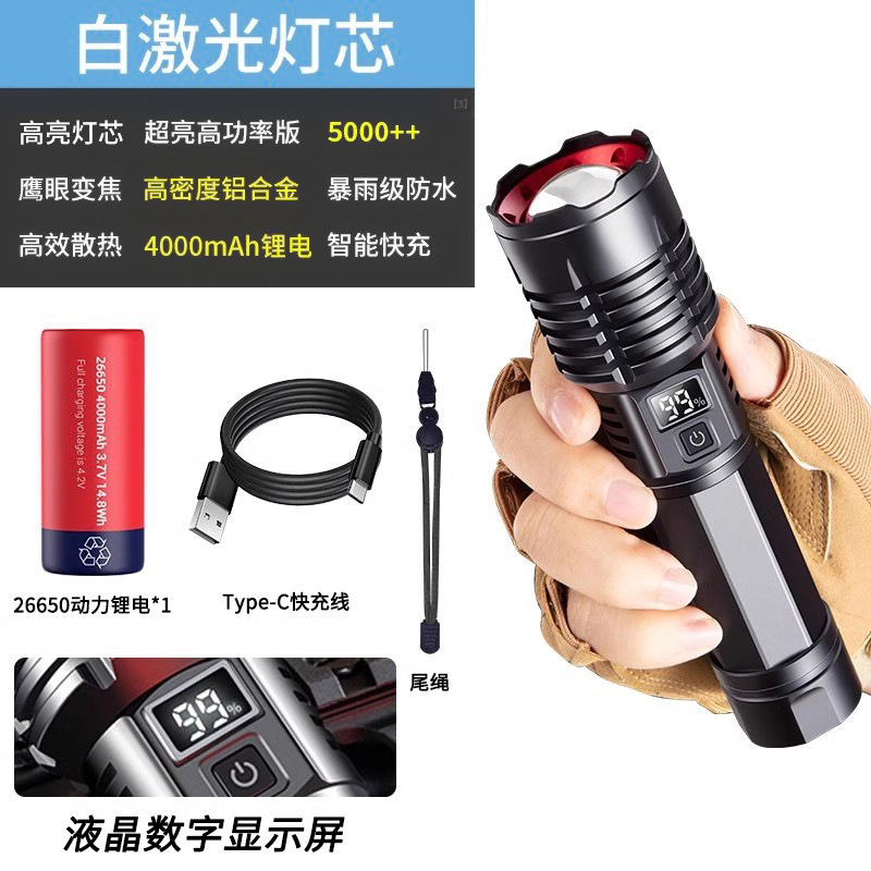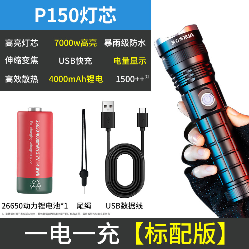 오크 강한 빛 슈퍼 밝은 손전등 야외 충전식 장거리 소형 미니 휴대용 led 손전등 작업 조명스토어 가기