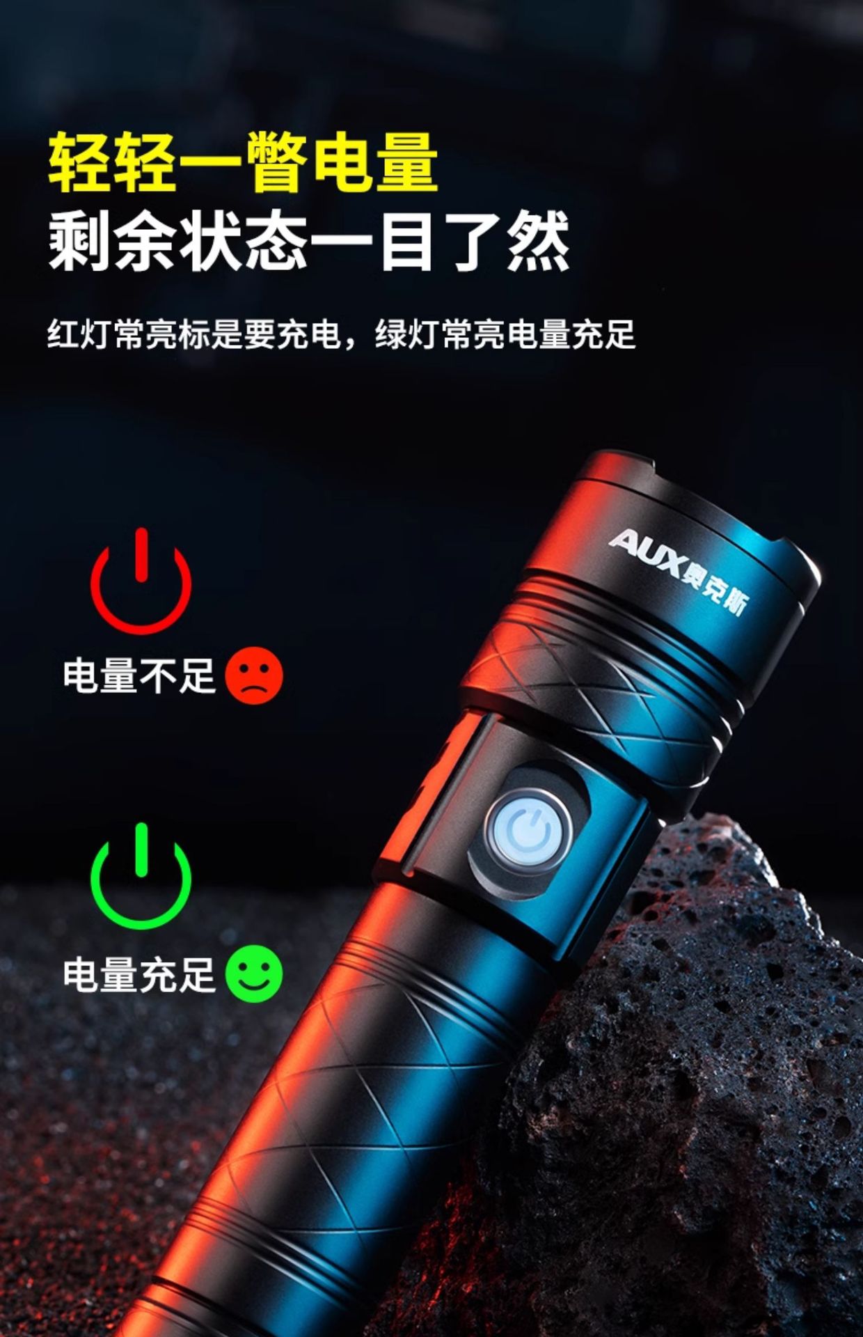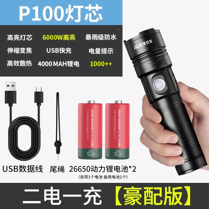 오크 강한 빛 슈퍼 밝은 손전등 야외 충전식 장거리 소형 미니 휴대용 led 손전등 작업 조명