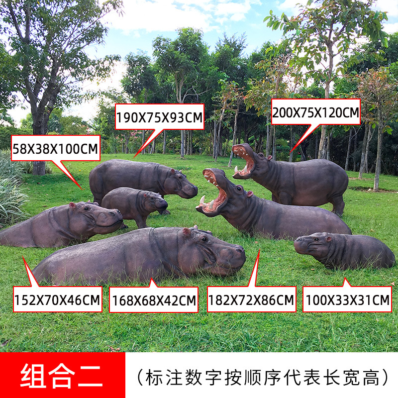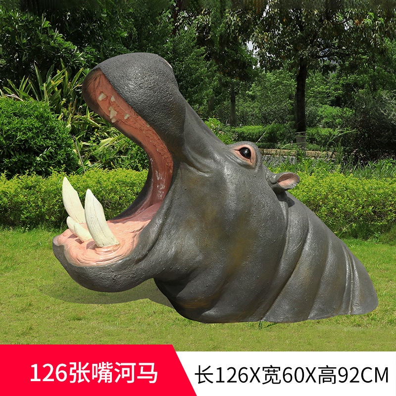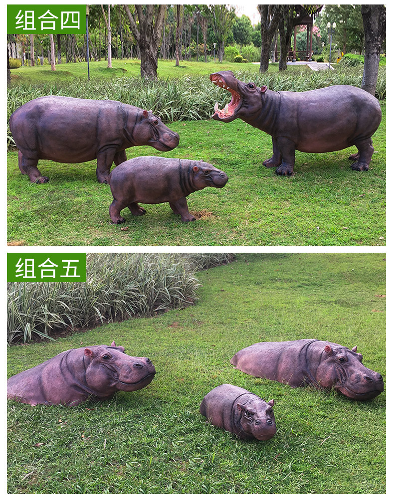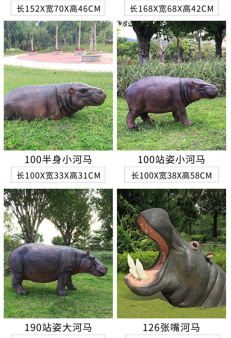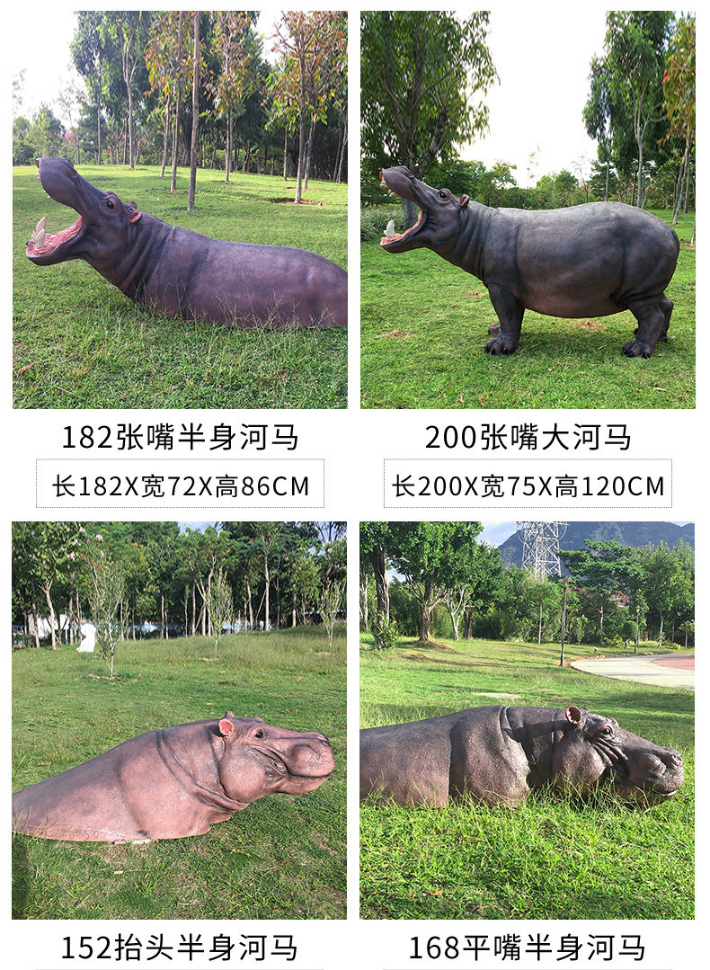 유리 섬유 강화 플라스틱 야외 시뮬레이션 하마 동물 조각 꽃 정원 수영장 녹색 풍경 안뜰 장식 장식스토어 가기