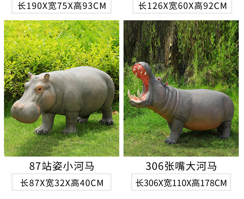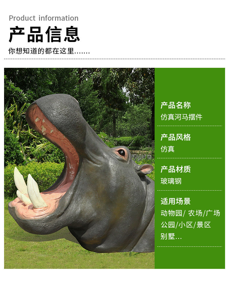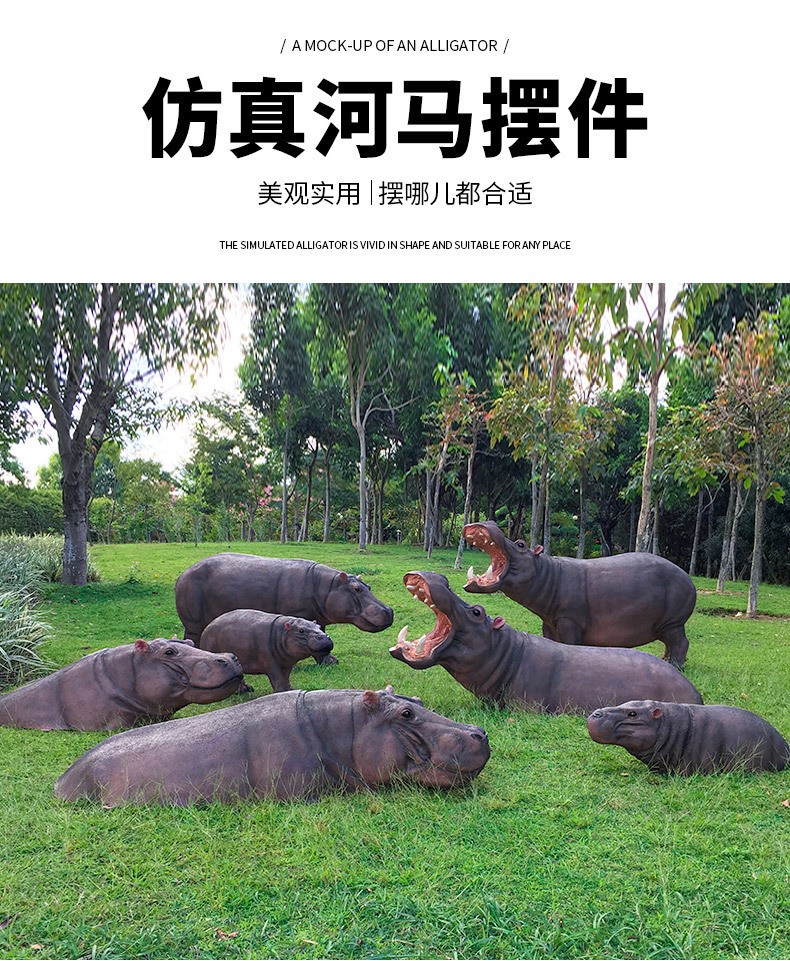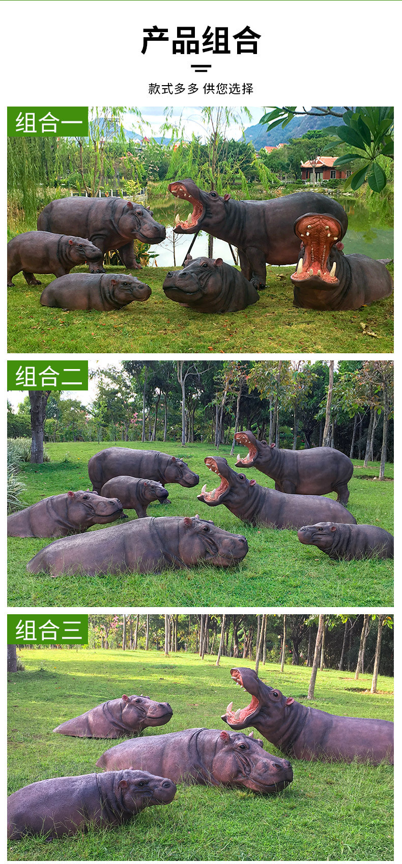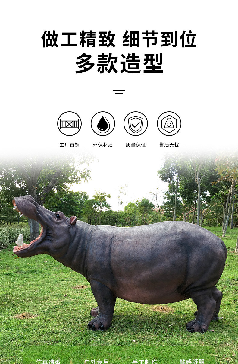 유리 섬유 강화 플라스틱 야외 시뮬레이션 하마 동물 조각 꽃 정원 수영장 녹색 풍경 안뜰 장식 장식스토어 가기