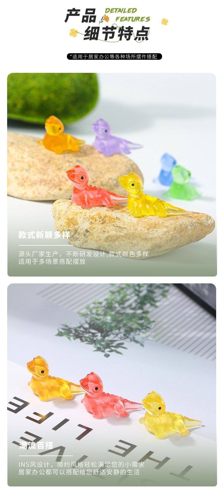 만화 귀여운 도마뱀 시리즈 마이크로 풍경 수조 조경 작은 장식품 귀여운 다채로운 빛나는 데스크탑 액세서리 장식품스토어 가기