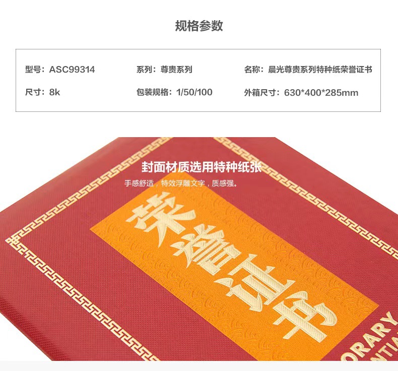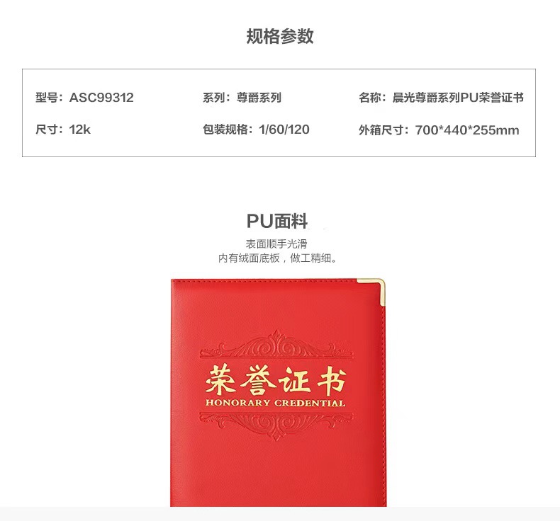 Chenguang Honor 인증서 스웨이드 12K 두꺼운 브론징 인증서 커버 가죽 직원 인증서 쉘 인쇄 템플릿 보내기스토어 가기