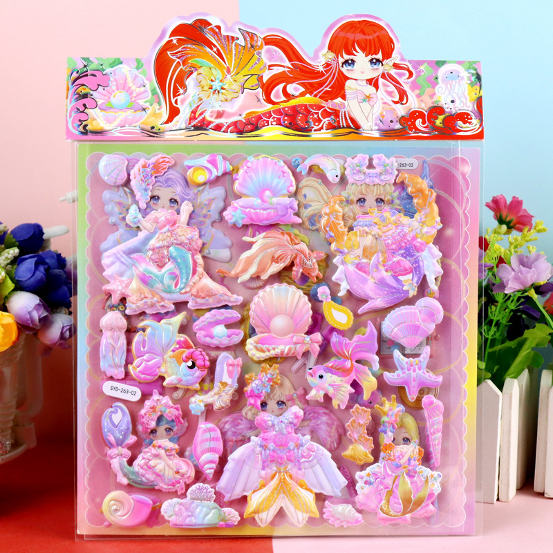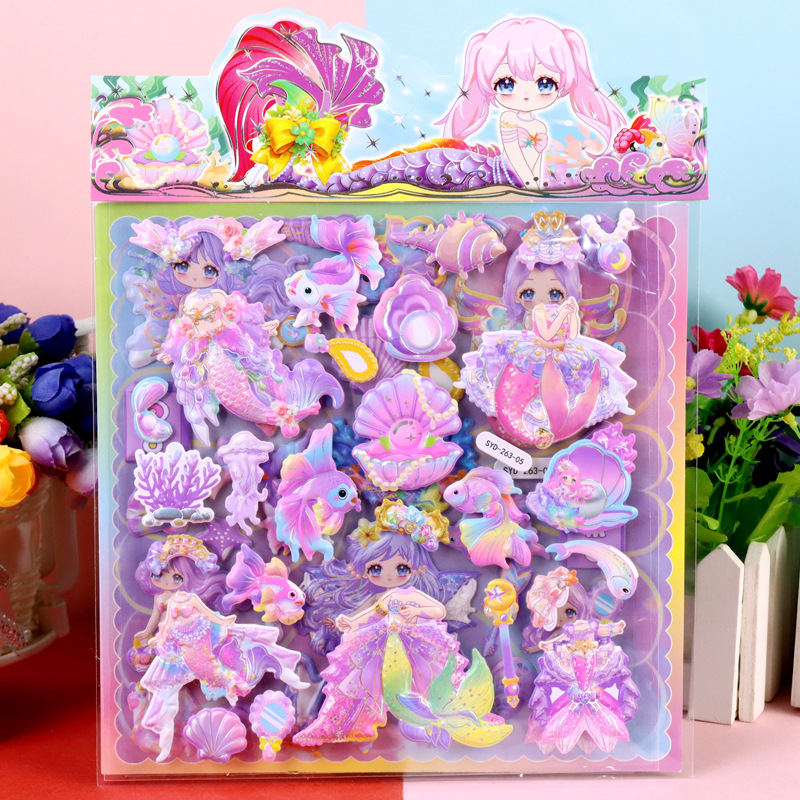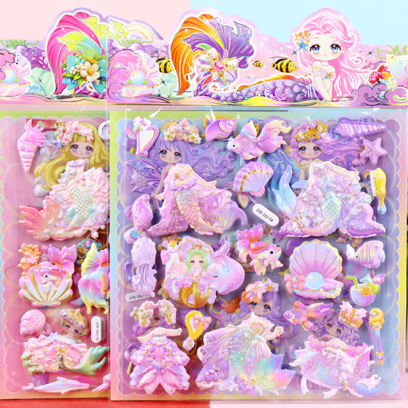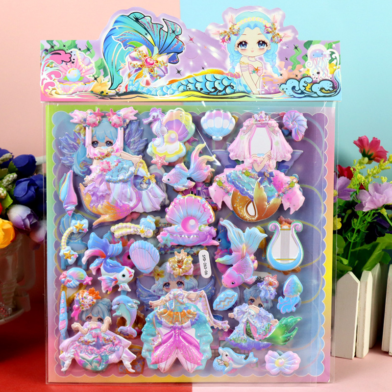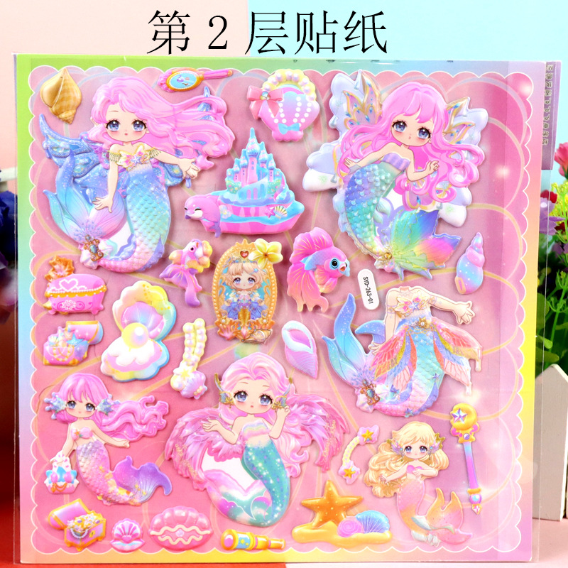 인어 원피스 수제 종이 카드 옷장 스티커 어린이 만화 3 차원 인어 드레싱 더블 레이어 원피스 거품 스티커스토어 가기