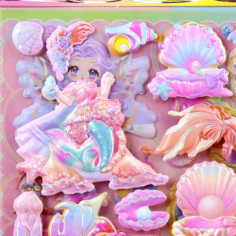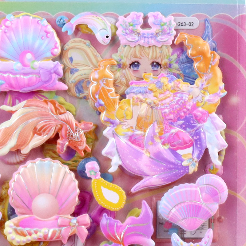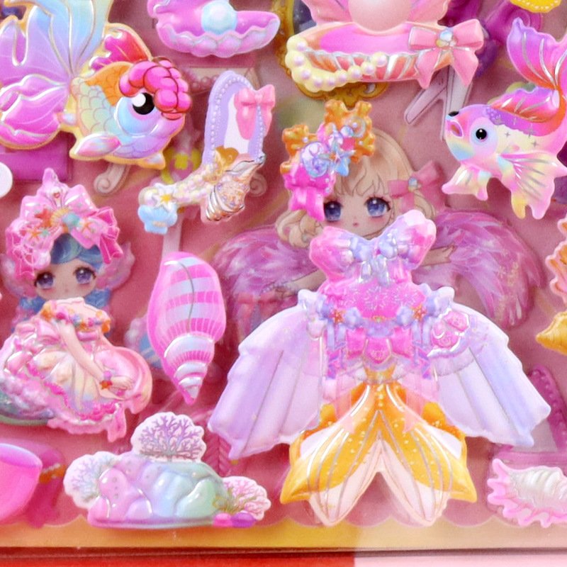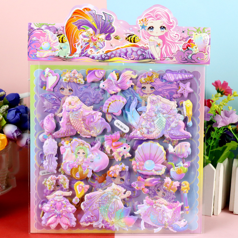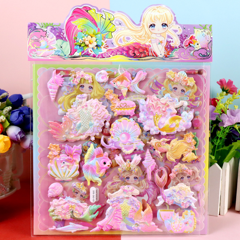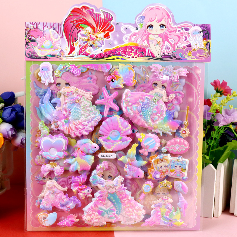 인어 원피스 수제 종이 카드 옷장 스티커 어린이 만화 3 차원 인어 드레싱 더블 레이어 원피스 거품 스티커스토어 가기