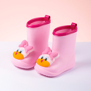 어린이 비 부츠 새로운 만화 미끄럼 방지 소년 야외 귀여운 유치원 아기 장화 노란 오리 어린이 장화