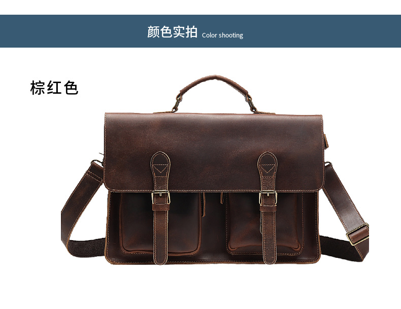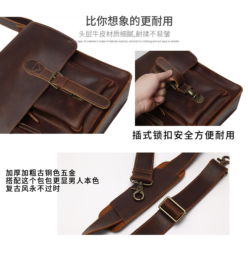 진짜 가죽 레트로 스타일 핸드백 남성 가방 커버 미친 말 가죽 크로스 바디 가방 비즈니스 노트북 서류 가방스토어 가기