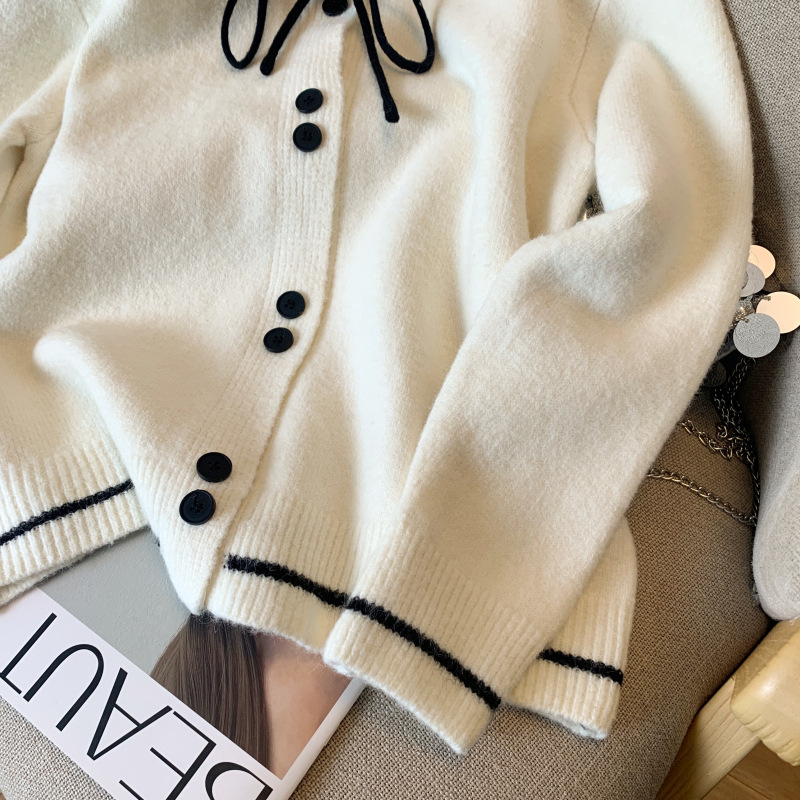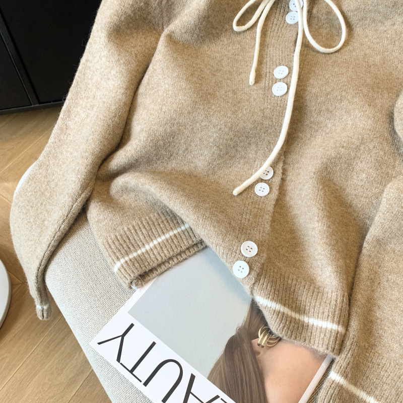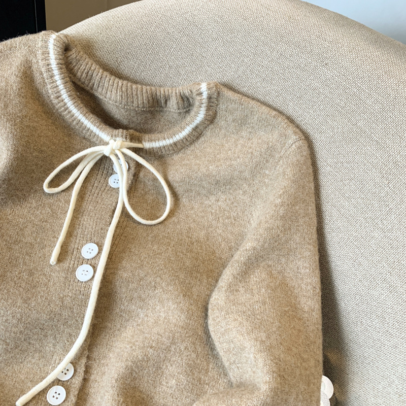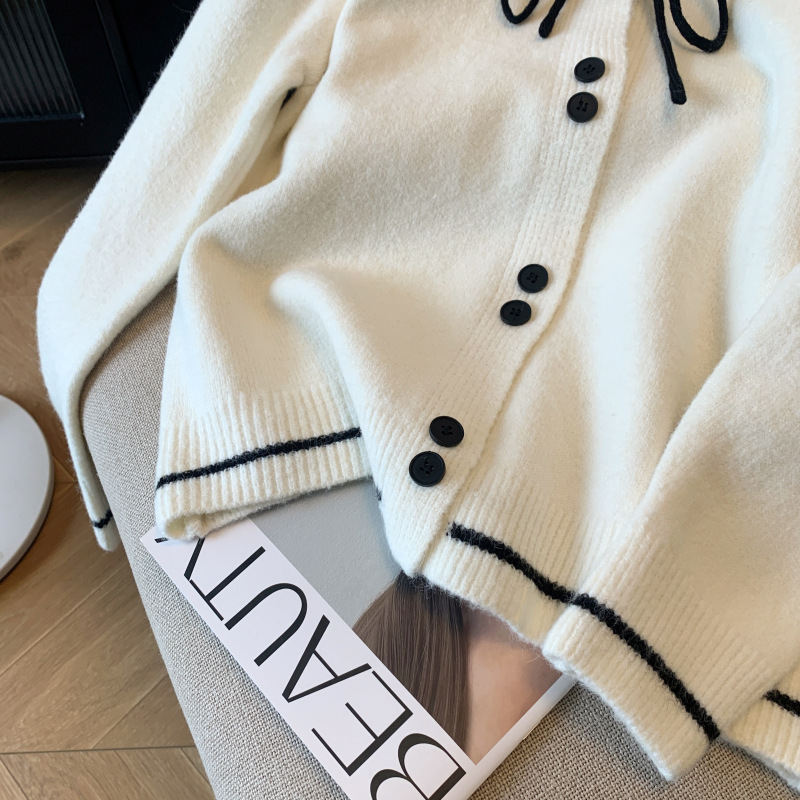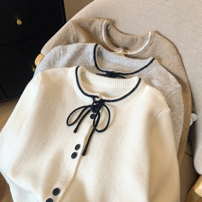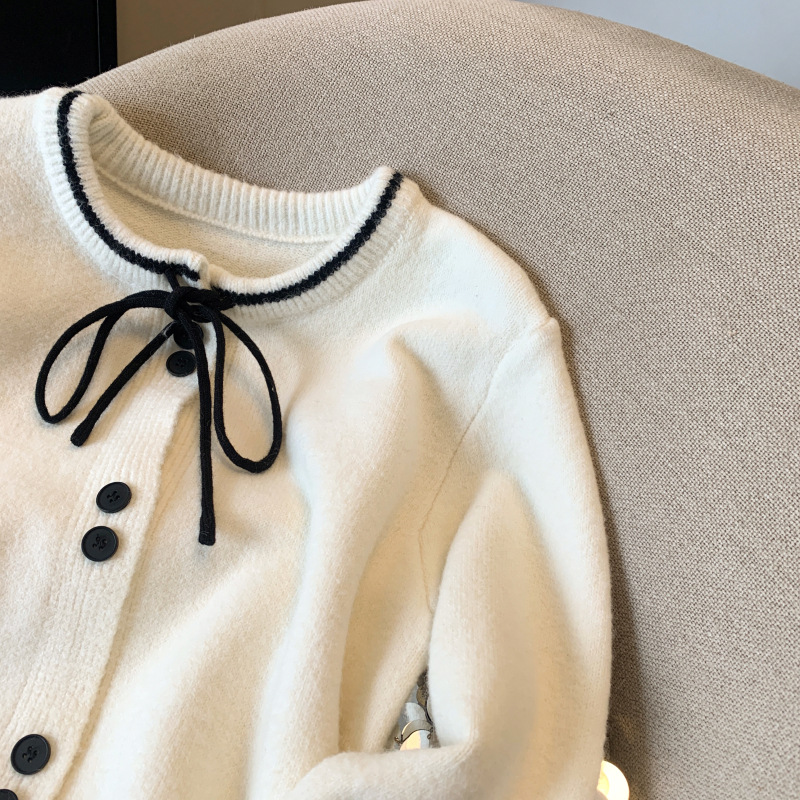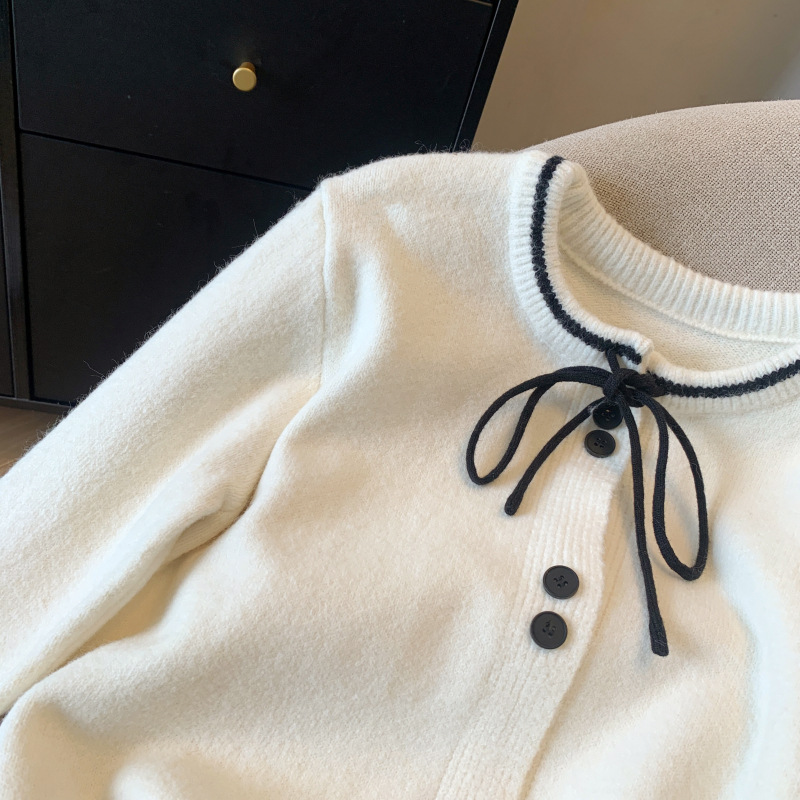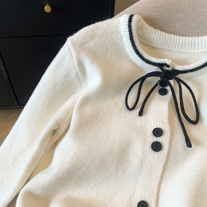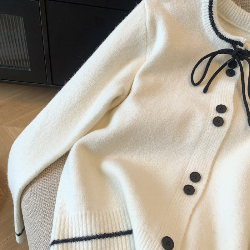 2024 차 스타일 소프트 왁스 패션 샤넬 스타일 니트 스웨터 카디건 여성 초가을 라운드 넥 하이 엔드 코트스토어 가기