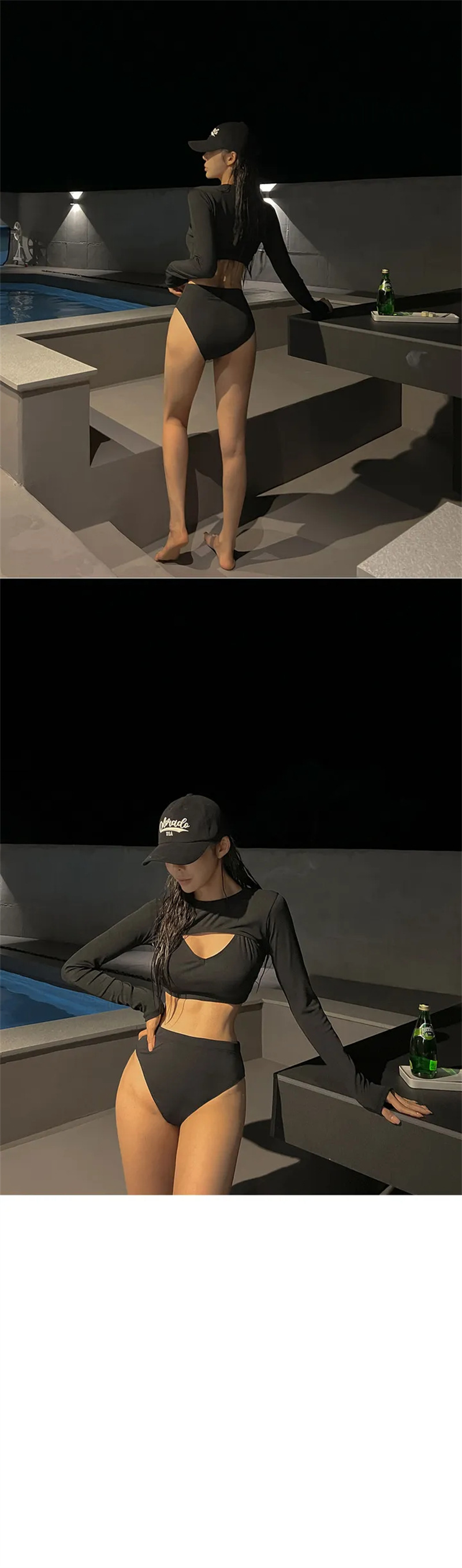 2024 새로운 수영복 여성의 섹시한 비키니 3 피스 세트 긴 소매 분할 삼각형 온천