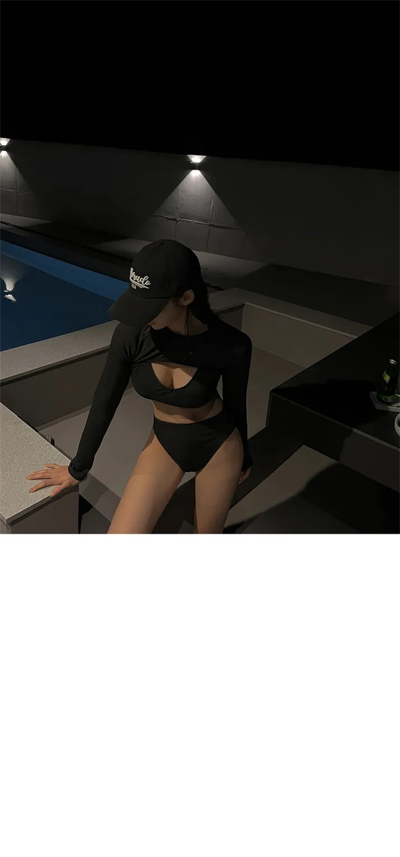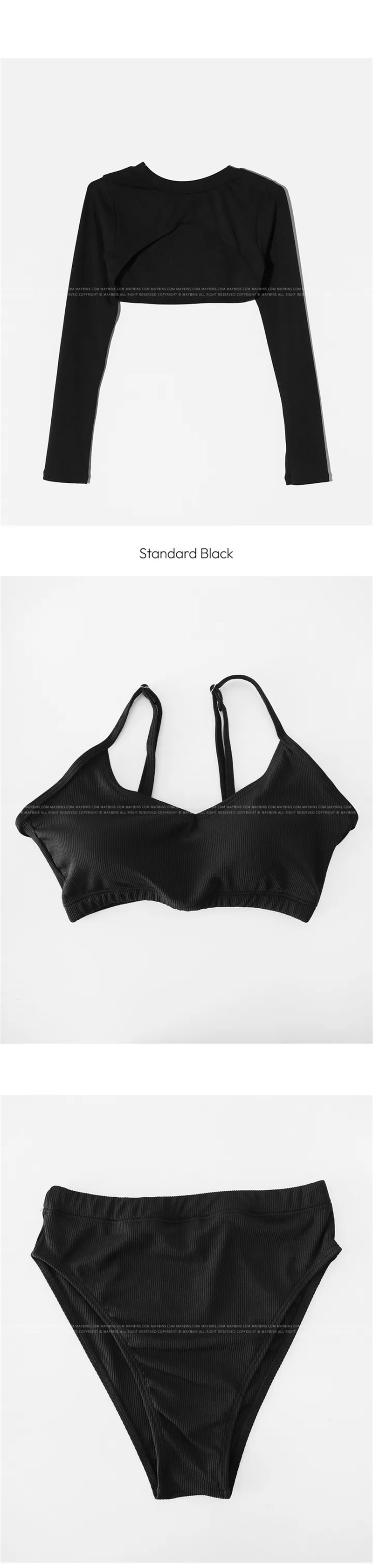 2024 새로운 수영복 여성의 섹시한 비키니 3 피스 세트 긴 소매 분할 삼각형 온천스토어 가기