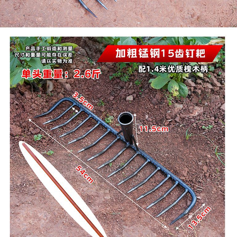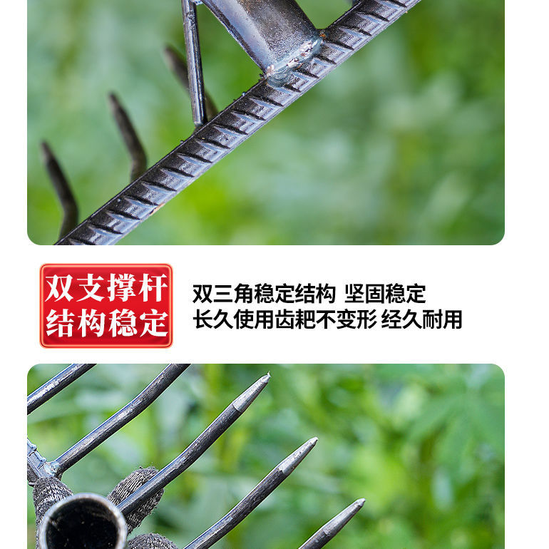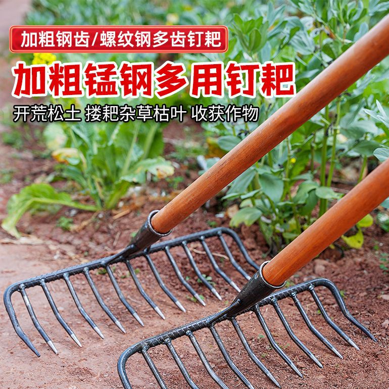 농업 철 갈퀴 9 개 이빨 갈퀴 느슨한 토양 망간 강철 나선형 갈퀴 돼지 8 개 두껍게 된 갈퀴 잔디 정원 토양