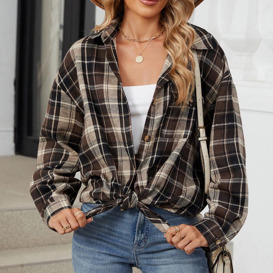 아마존 유럽과 미국 국경 대외 무역 2024 가을/겨울 대형 BF 바람 격자 무늬 셔츠 샌딩 긴 소매 셔츠