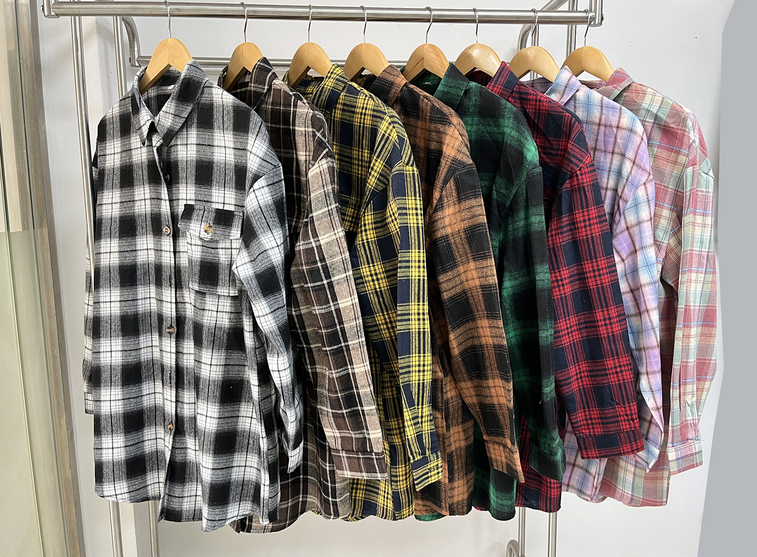 아마존 유럽과 미국 국경 대외 무역 2024 가을/겨울 대형 BF 바람 격자 무늬 셔츠 샌딩 긴 소매 셔츠스토어 가기